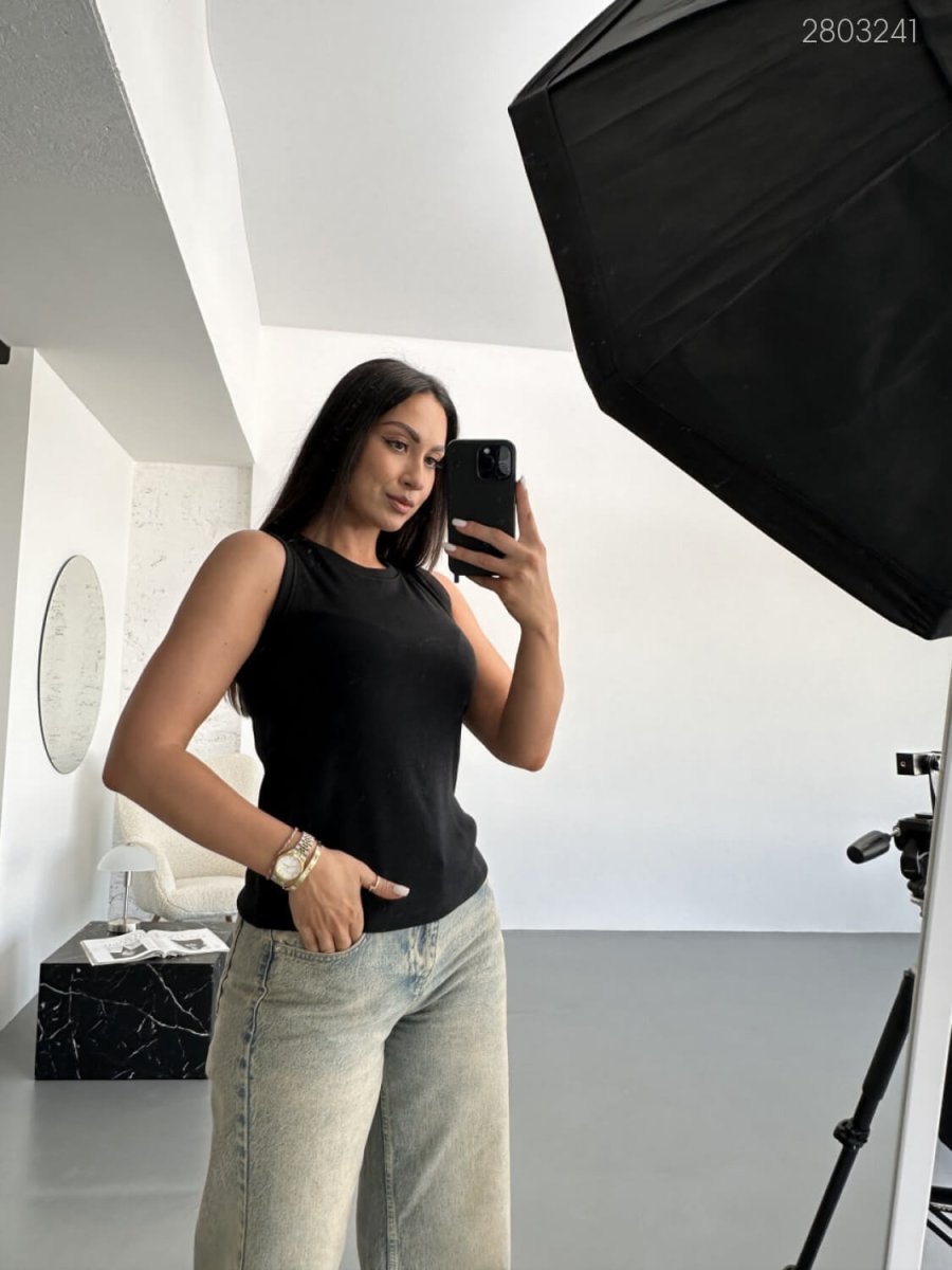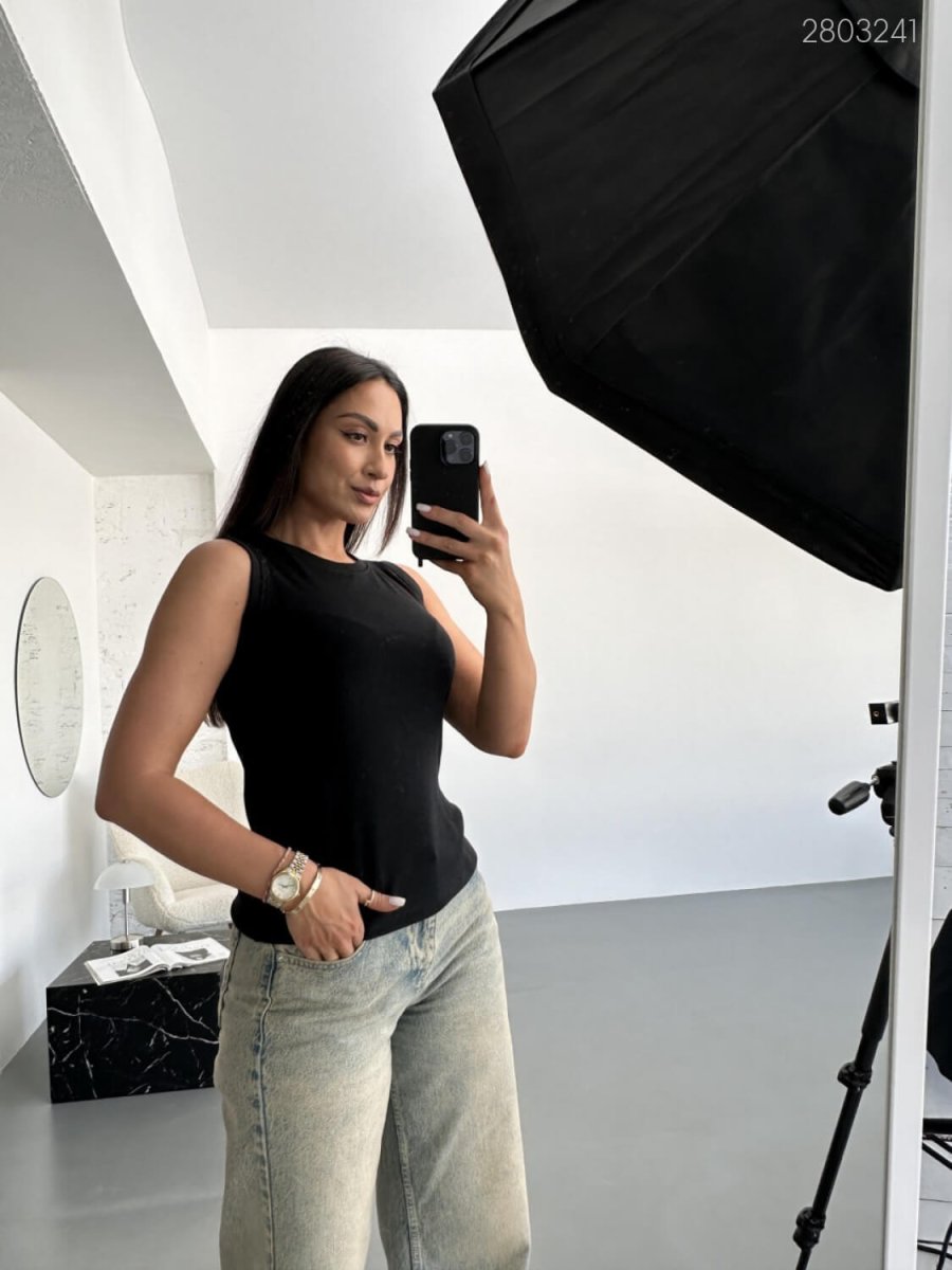 Детали: Трикотажный топ полу прилегающего силуэта без рукавов