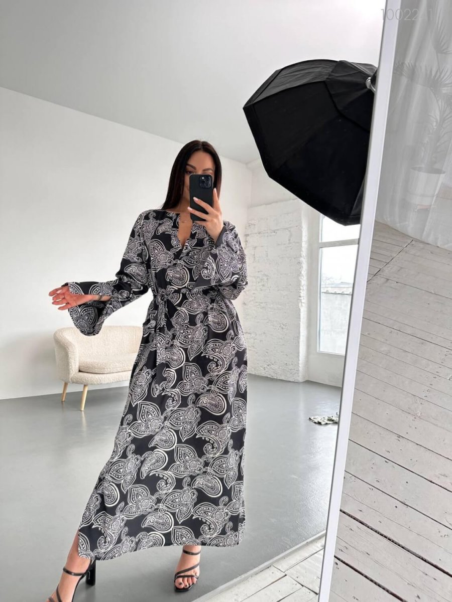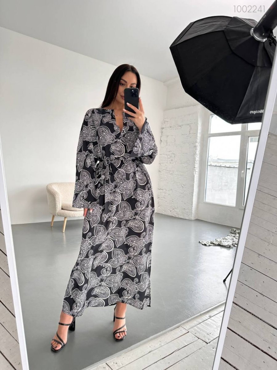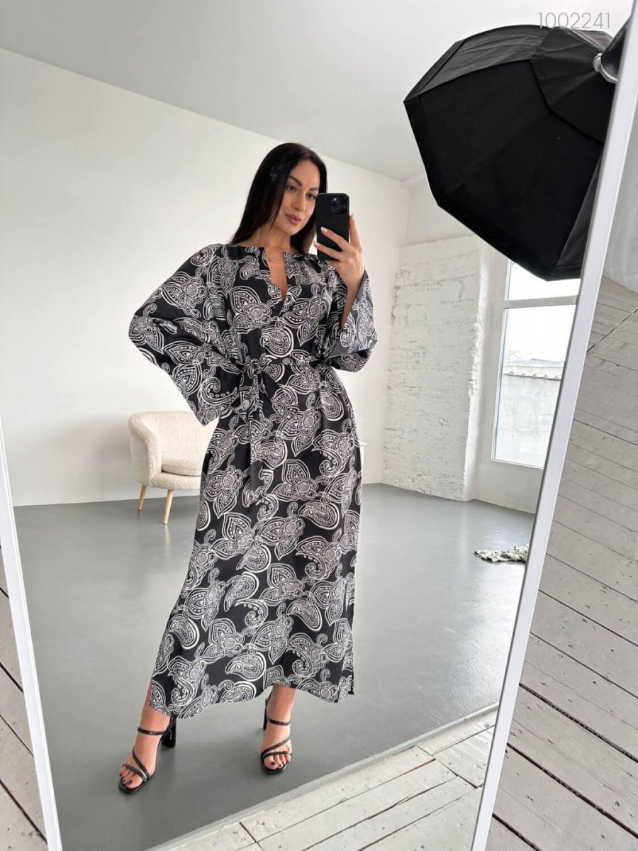 Детали: Платье свободного силуэта длиною макси. Рукав 3/4, пояс в комплекте.