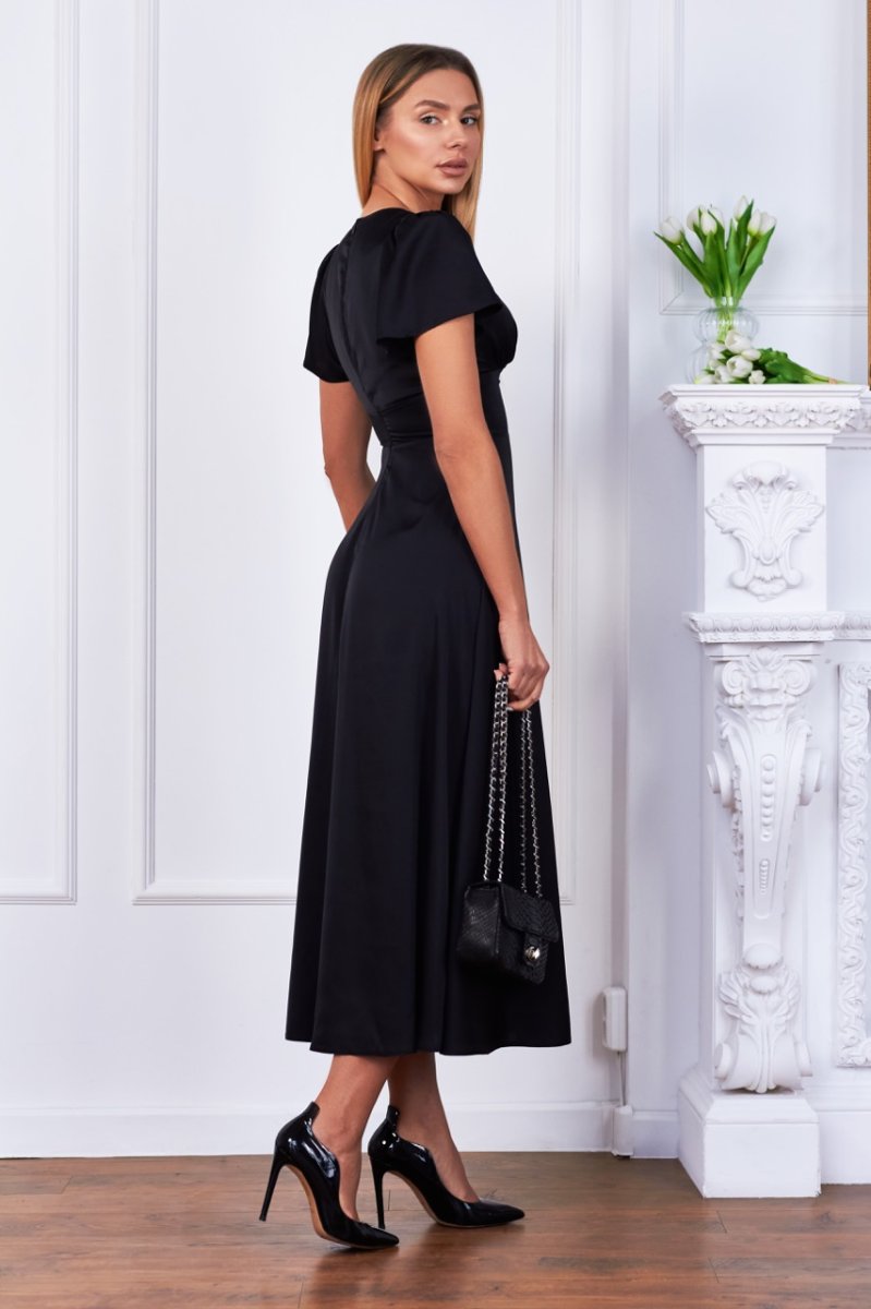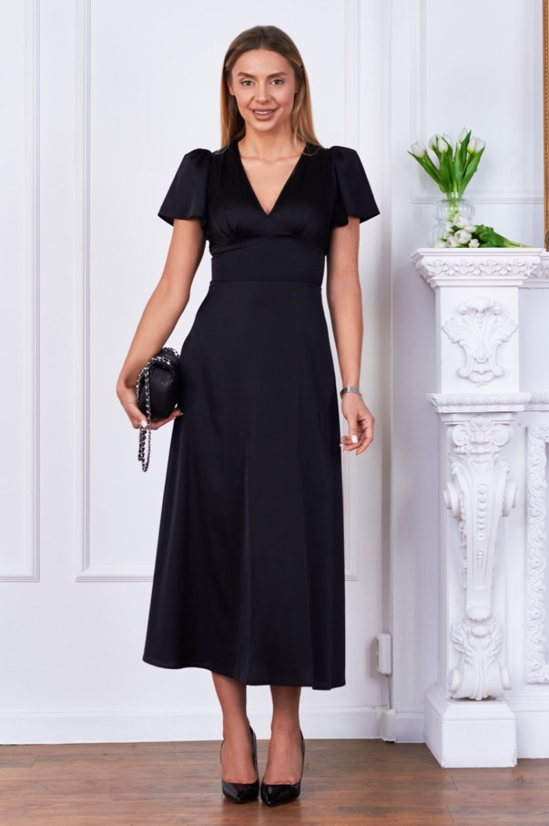 Это волшебное платье из шелка имеет рукава-крылышки и имитацию корсета по талии. V-образный вырез декольте придает привлекательность линии груди. Эта модель подчеркнет женственность и элегантность. Она идеальна для особых случаев и праздничных мероприятий.