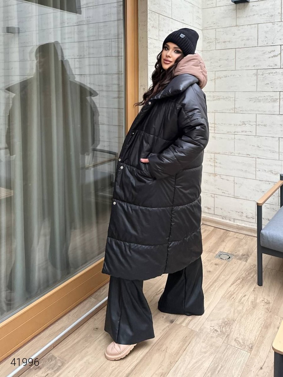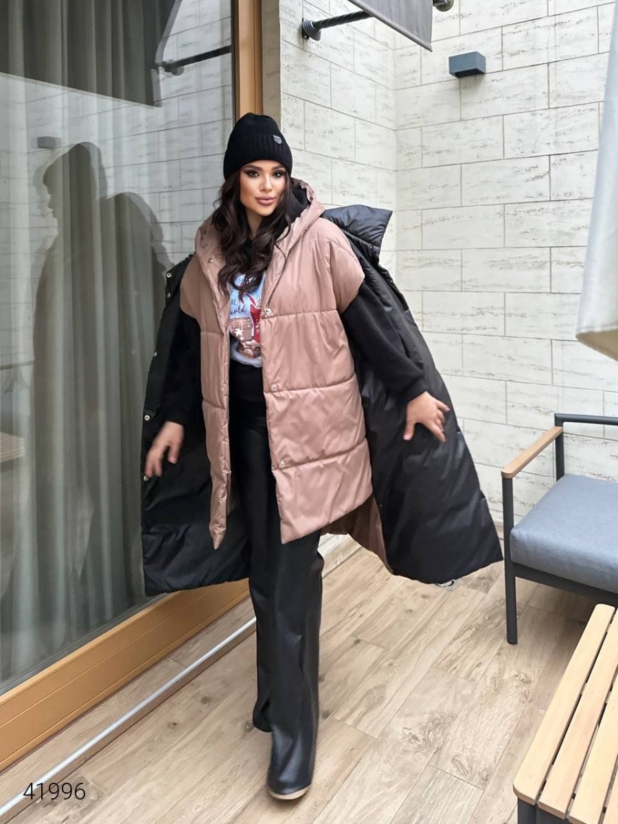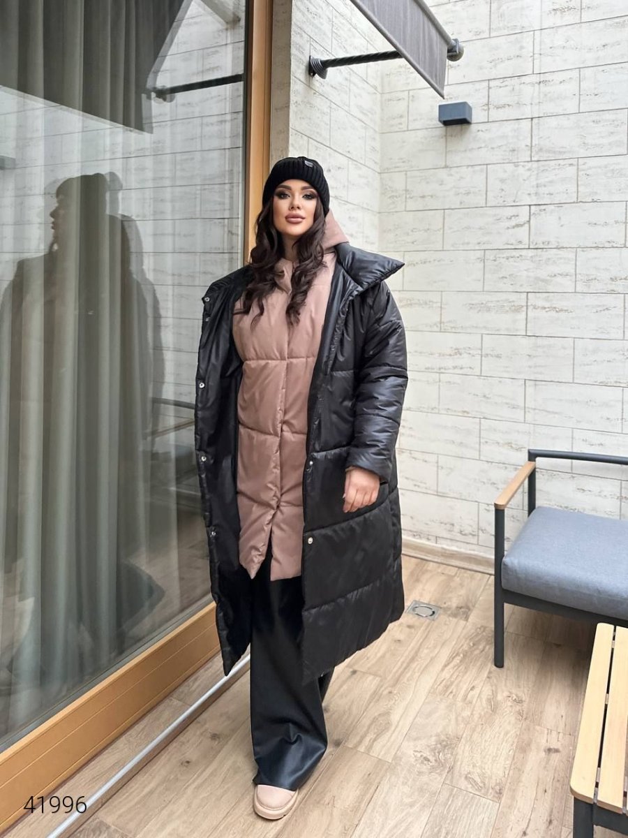 Двойное женское стеганое пальто. Эффект двойного пальто, внутренняя часть на кнопках,