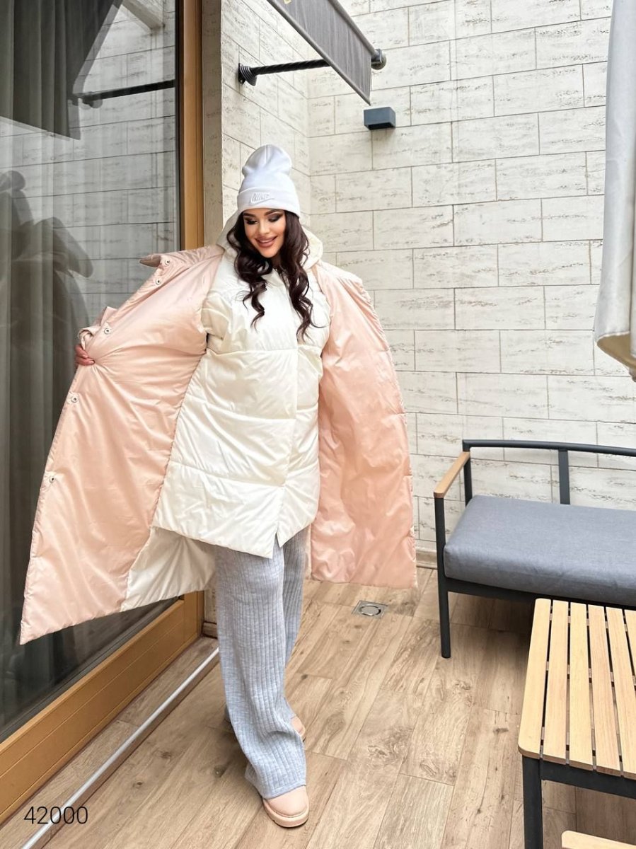 Двойное женское стеганое пальто. Эффект двойного пальто, внутренняя часть на кнопках,