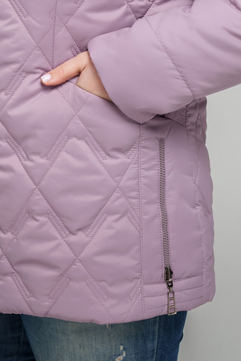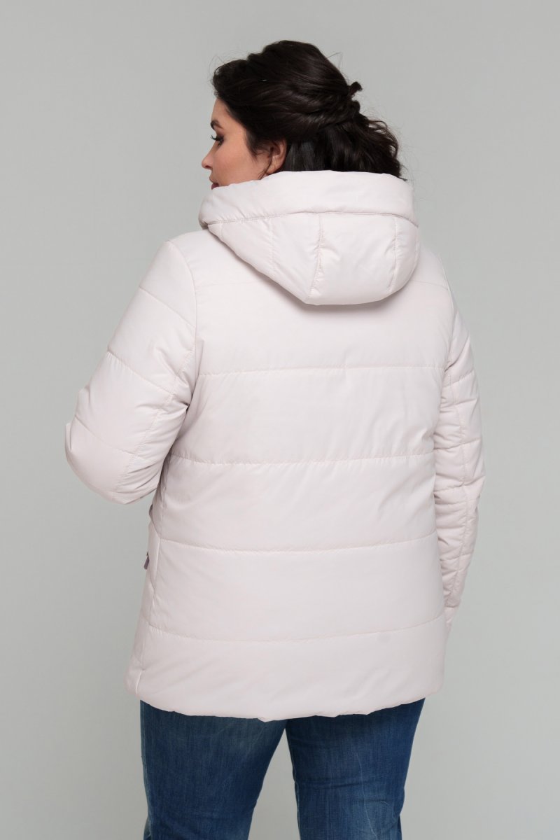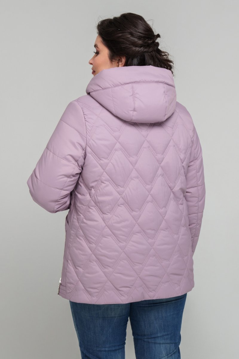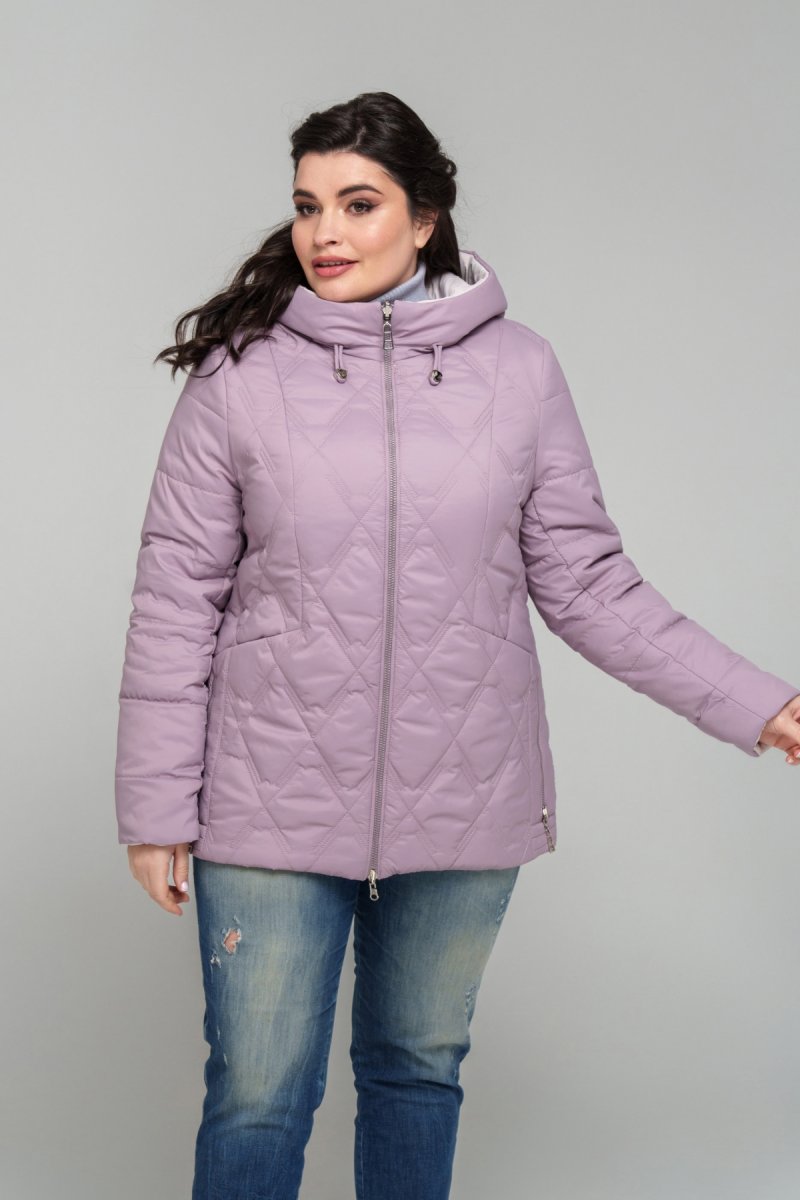 Куртка двухсторонняя, прямого силуэта, изготовлена из плащевки двух оттенков. Наполнитель тинсулейт 160 (г/м2). Рукав втачный, двухшовный. Капюшон втачный (несъемный), высота регулируется с помощью шнурка с зажимами. В рельефных швах полки выполнены в карманах, декорированных молниями. На внутренней стороне кармана декорированы шнурком с зажимами. Застежка на двустороннюю молнию.