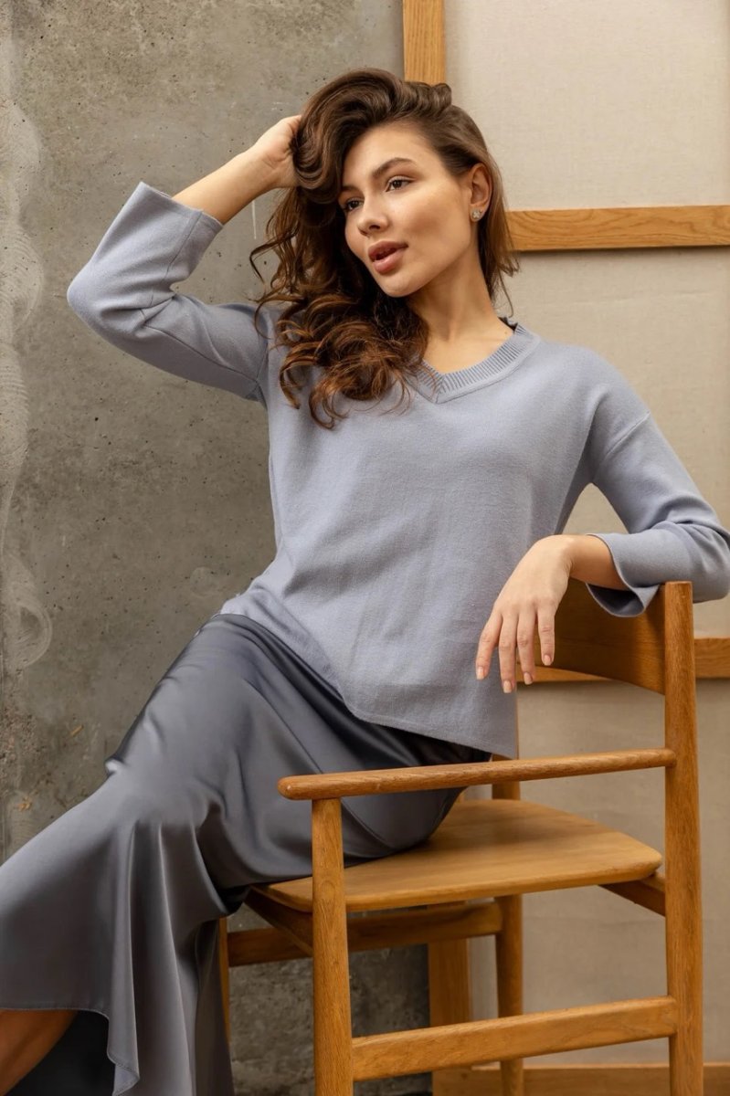 Свободный фасон изделия дополняет приспущенный рукав и v- образная горловина. Модель прекрасно сочетается с джинсовыми изделиями, с минималистичными украшениями. Высококачественная вязка дарит ощущение спокойствия и заботы. Наслаждение осенью может быть в любимой одежде и радостном настроении.