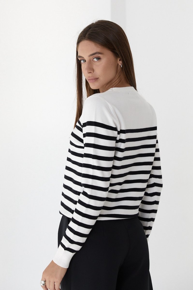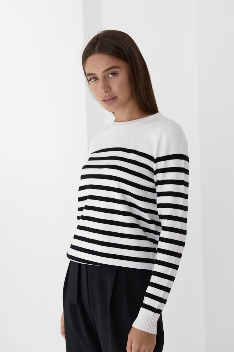 Теплый трикотажный джемпер. Рукава втачные, длинные, по низу рукавов и по низу изделия выполнен манжет.