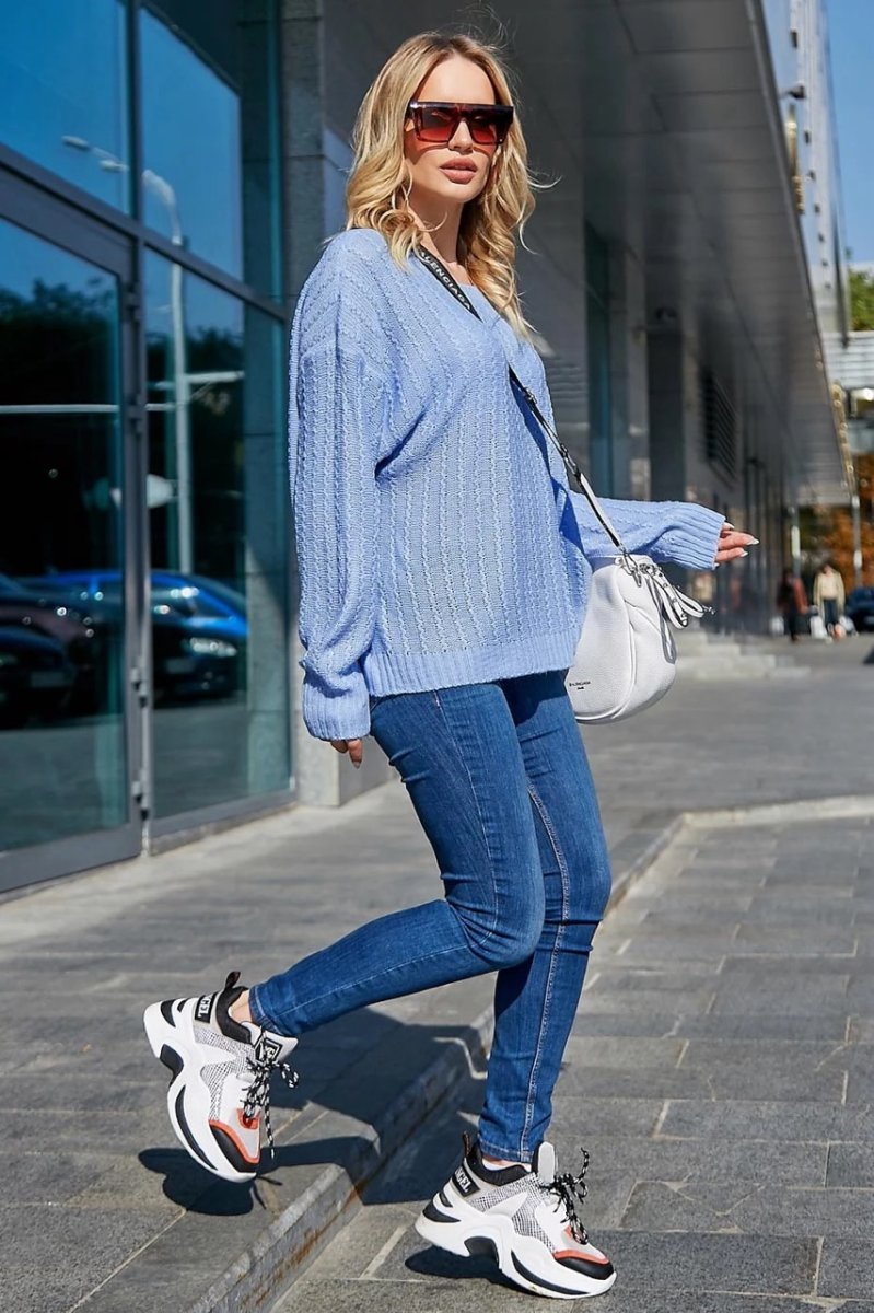 Изделие оверсайз изготовлено из высококачественной вязки, имеет элегантную круглую горловину и приспущенное плечо. Свободный фасон оверсайз раскрепостит движения, придаст уверенности.