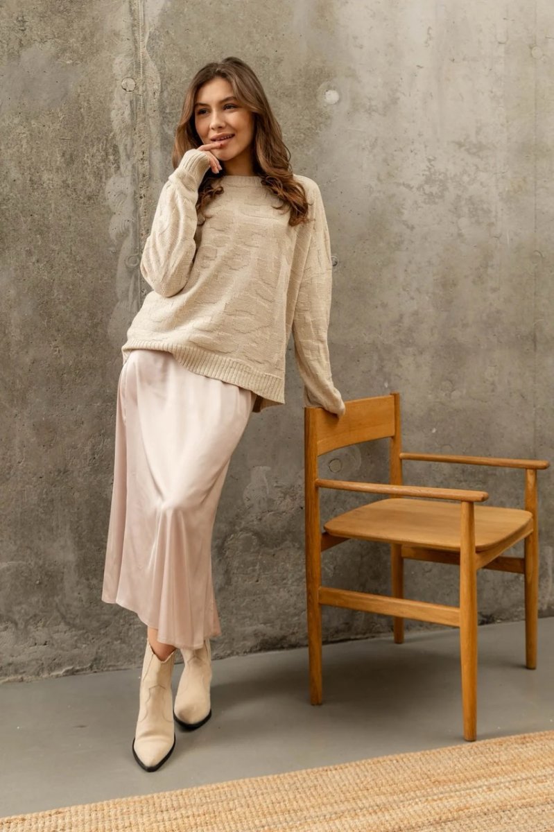 Высококачественная вязка складывается в необычную фактуру, а серый цвет органично сочетается с любым низом и образом. Джемпер с круглой горловиной и приспущенными длинными рукавами обеспечит комфорт и уют в прохладную погоду. Прямой крой не стесняет движен