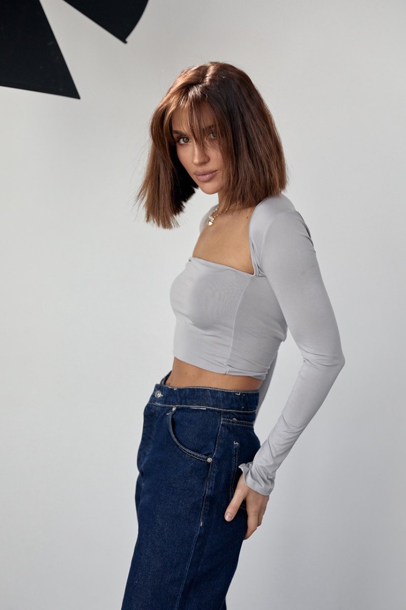 Укороченный женский кроп-топ с квадратным вырезом горловины - превосходная альтернатива базовым моделям, когда хочется добавить модных акцентов.