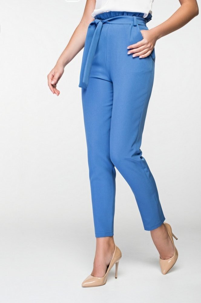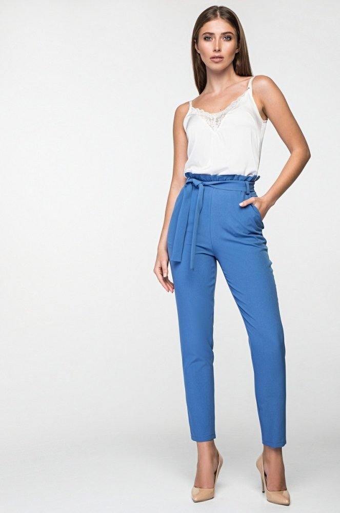 Зауженные брюки с высокой посадкой из костюмной ткани, потайная молния в боковом шве. Пояс в комплекте.