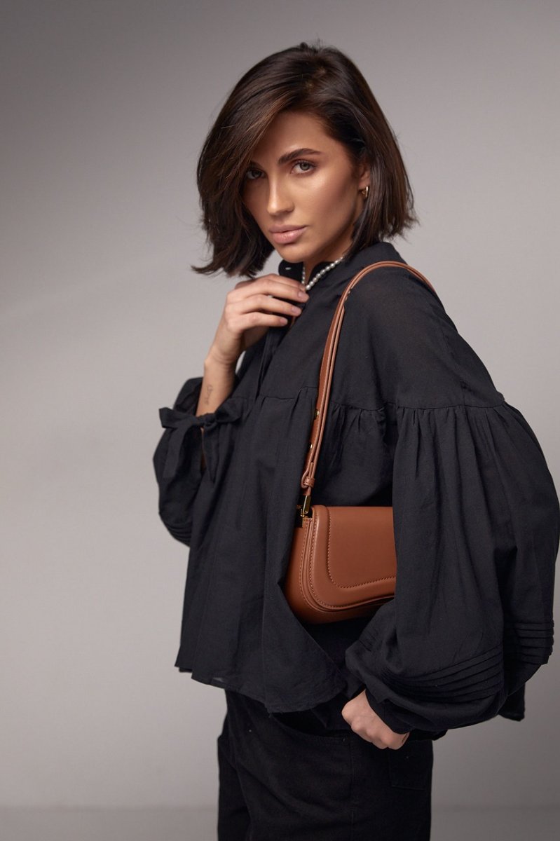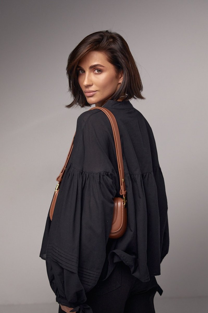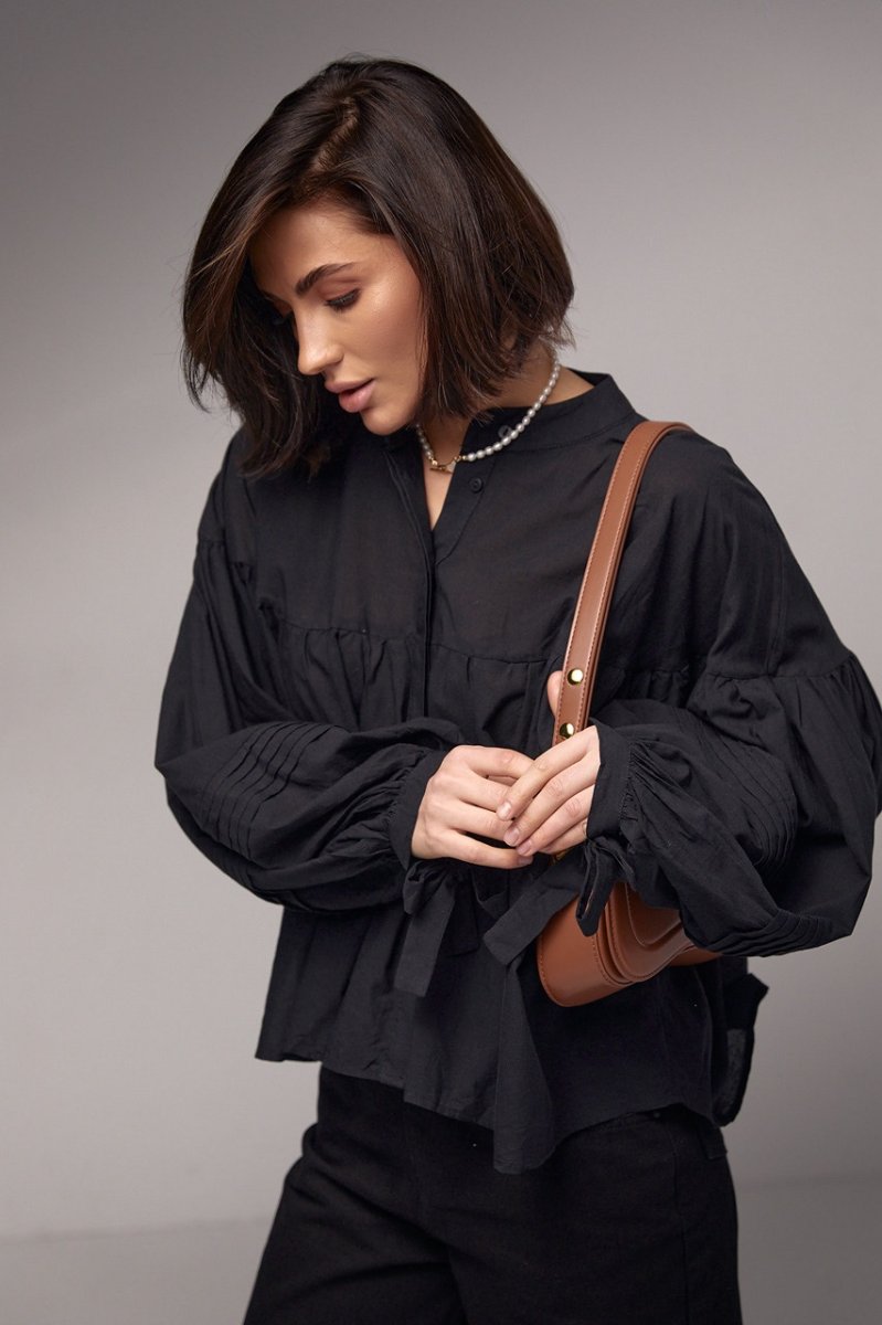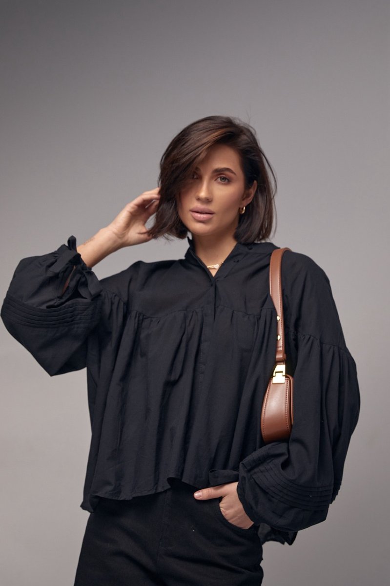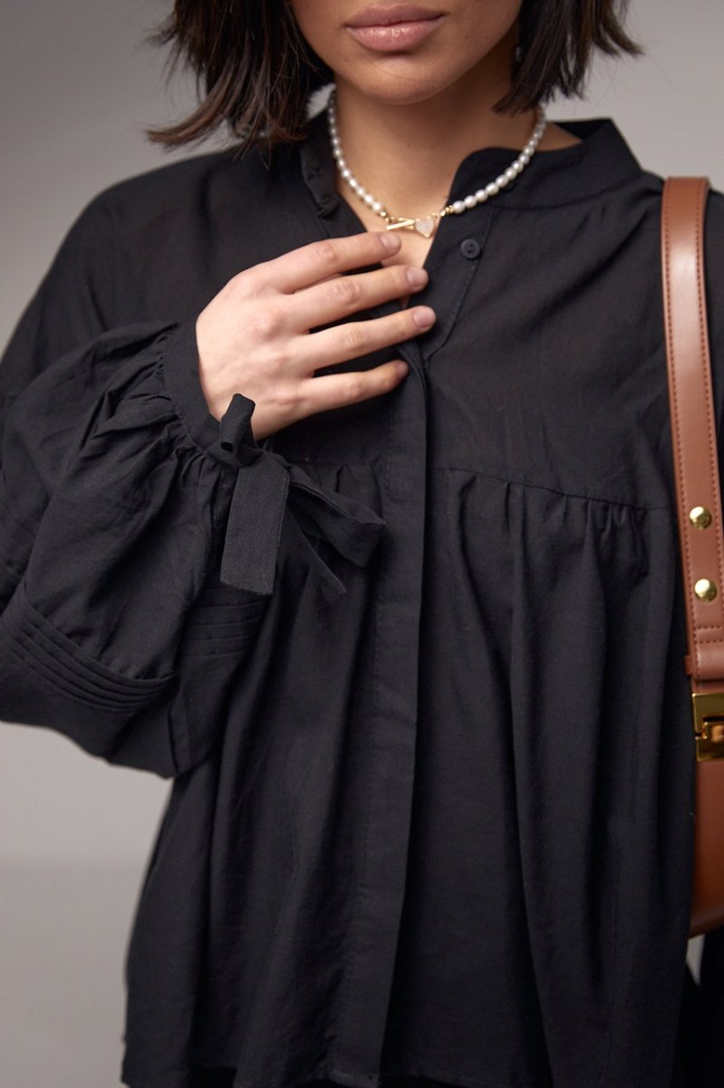 Хлопковая блузка с широкими рукавами на завязках - 6843 черная