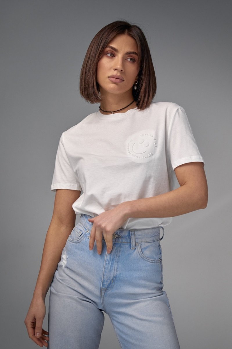 Хлопковая футболка с выпуклым принтом смайла - 02403 молочная