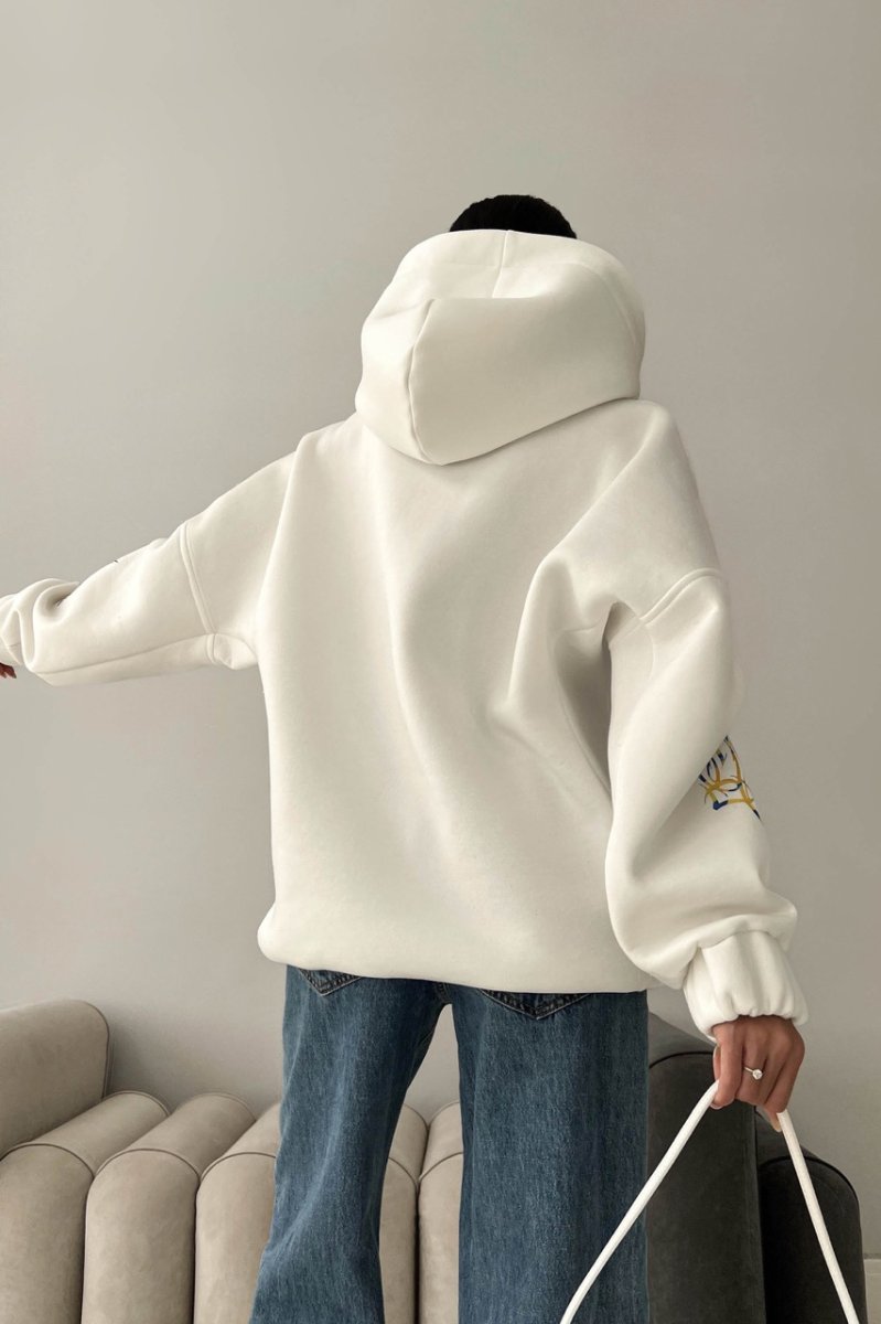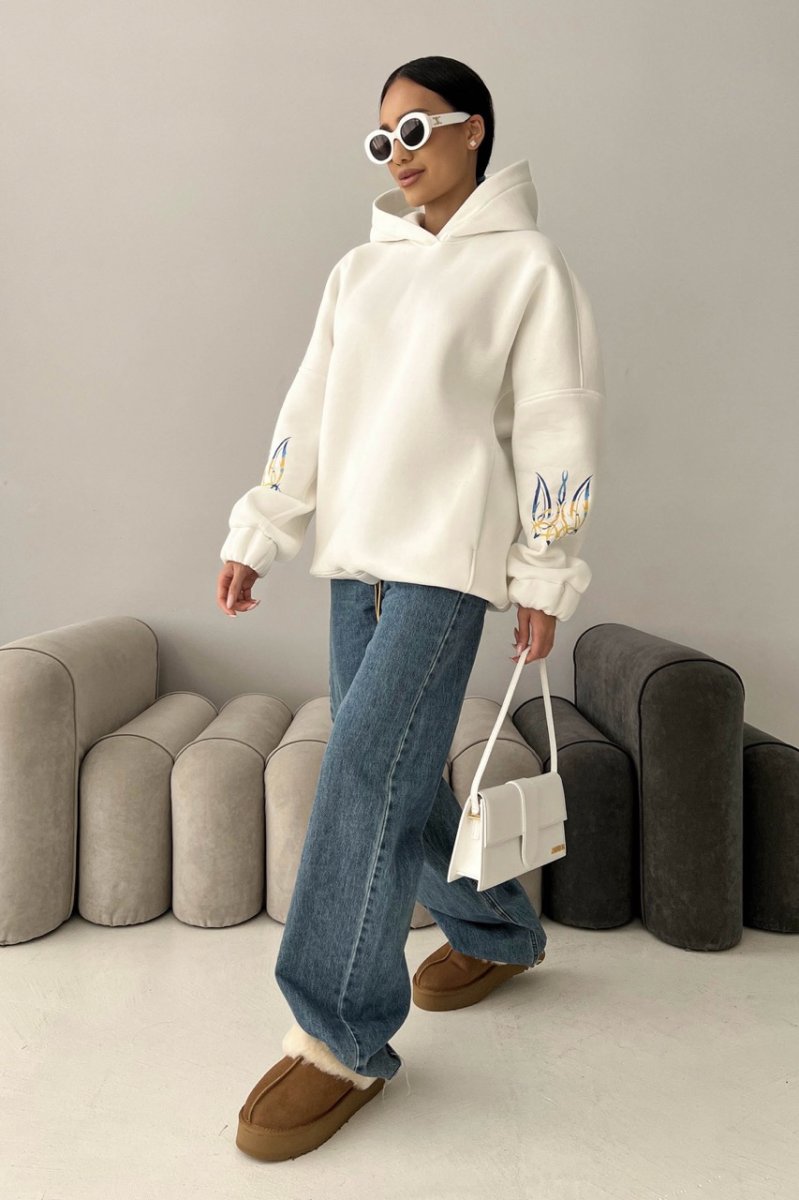 Объемный худи owersize из теплого футера - никогда не выходит из моды. Универсальная, удобная вещь на все случаи жизни. Удобная длина позволит носить тощие с джинсами или лосинами, с ботфортами или юбкой макси, – сочетаний может быть множество. Внизу ширина тощи регулируется шнурком. Удивительно качественная и комфортная ткань позволит Вам носить эту модель не один сезон. Прекрасный выбор на прохладную осень или зиму – теплая кофта с капюшоном, которую можно в любой момент одеть или снять. На рукавах стильная накатка.