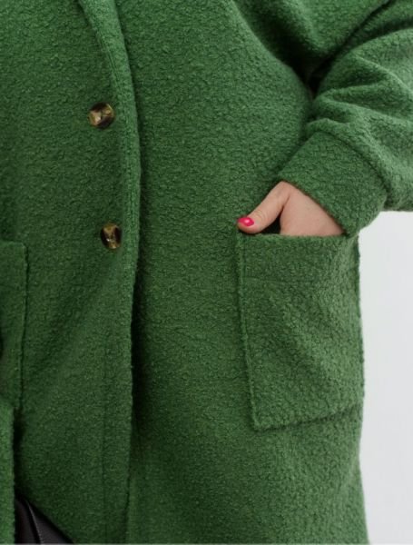 Этот стильный кардиган-пальто без подкладки из ткани баранчик – это удачный выбор для тех, кто ценит элегантность и комфорт. Его спущенные рукава с манжетами создают непринужденный стильный образ. Отложные ворота и накладные карманы добавляют пальто шарма и сделают его незаменимым элементом гардероба.