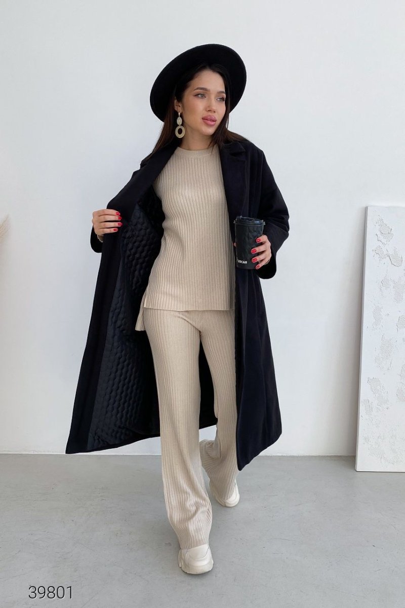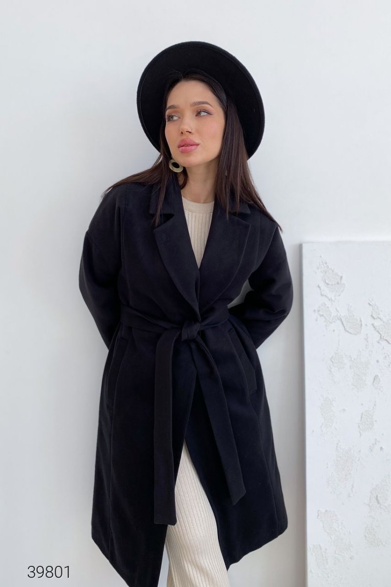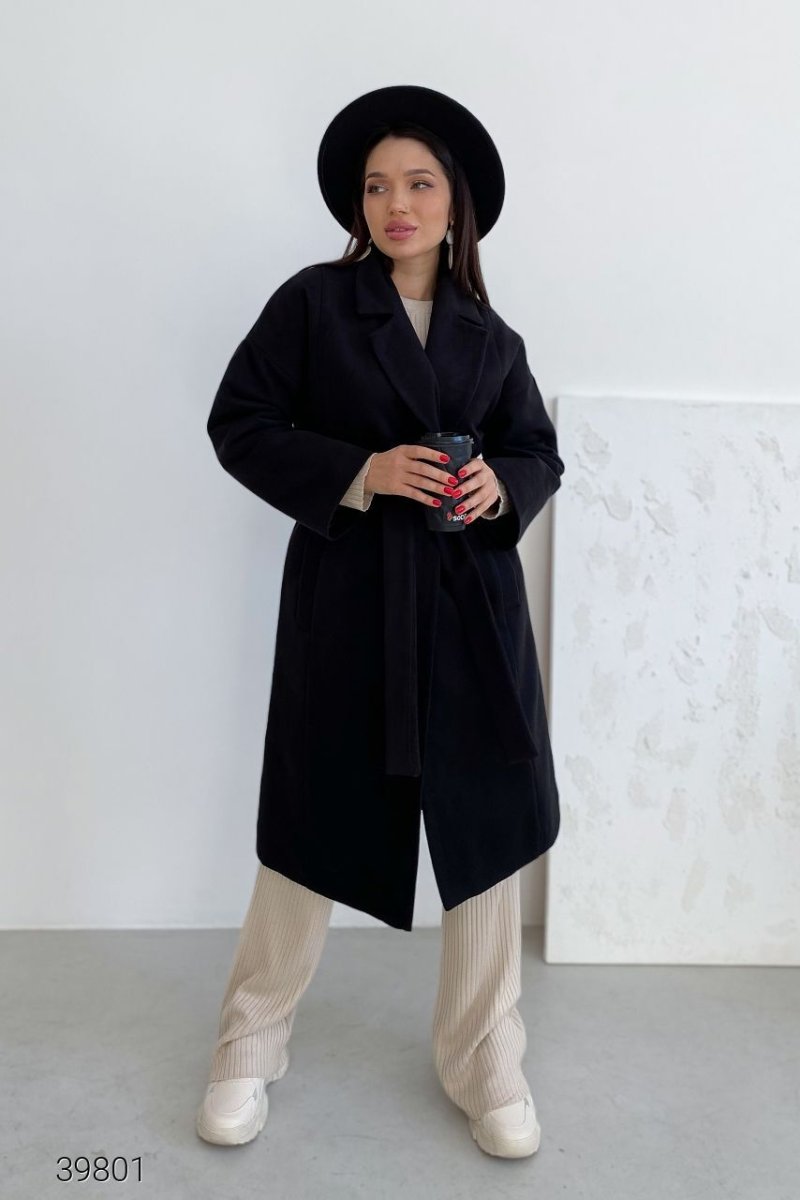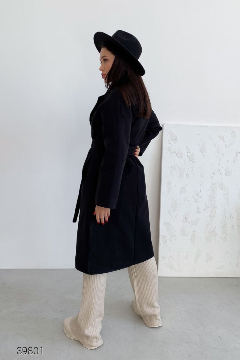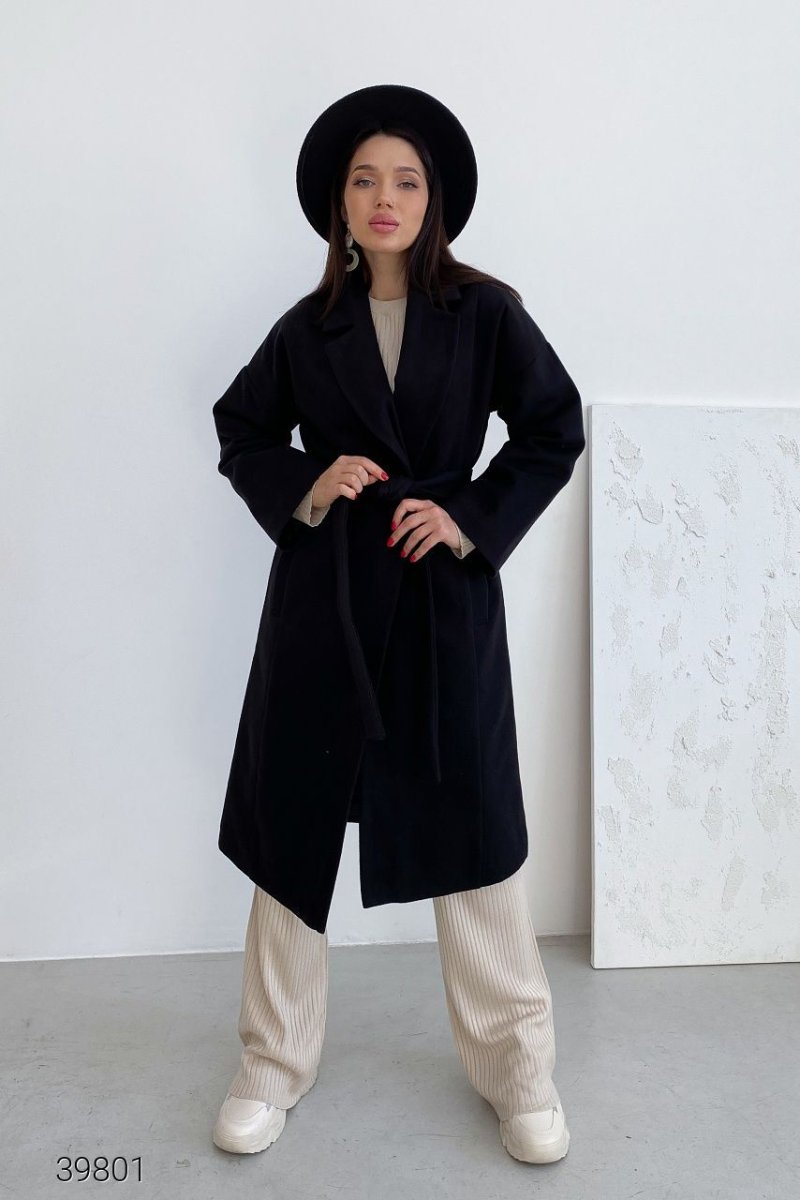 Пальто на запах длины миди из качественного кашемира. Лацканы с разрезами, заниженная линия плеч, боковые карманы, есть подкладка. В комплекте пояс из основной ткани.