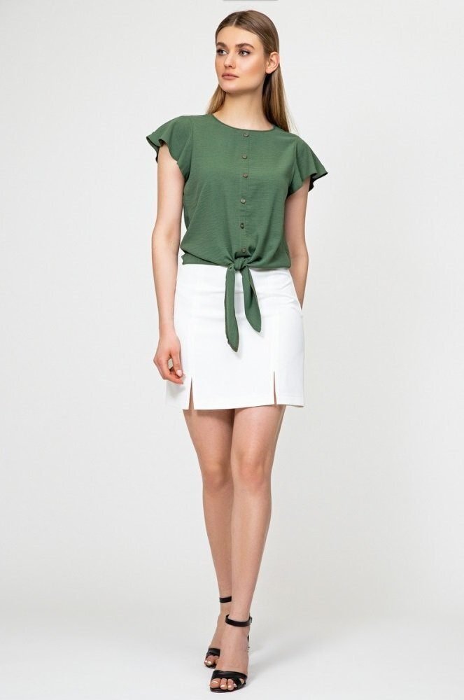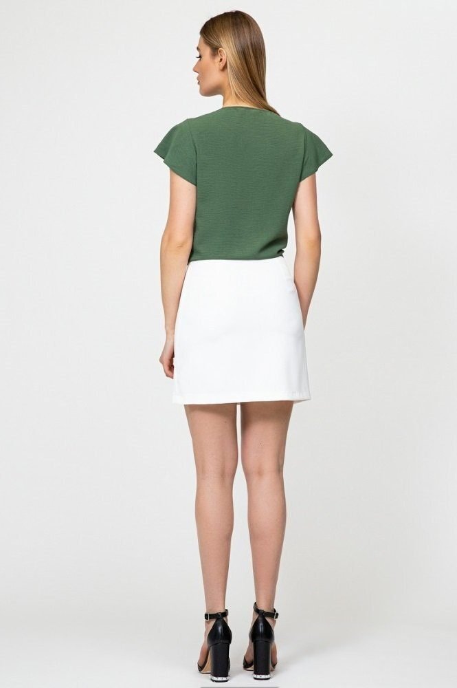 Классическая юбка мини из костюмной ткани с небольшыми разрезами спереди. Застегивается на потайную молнию сзади.