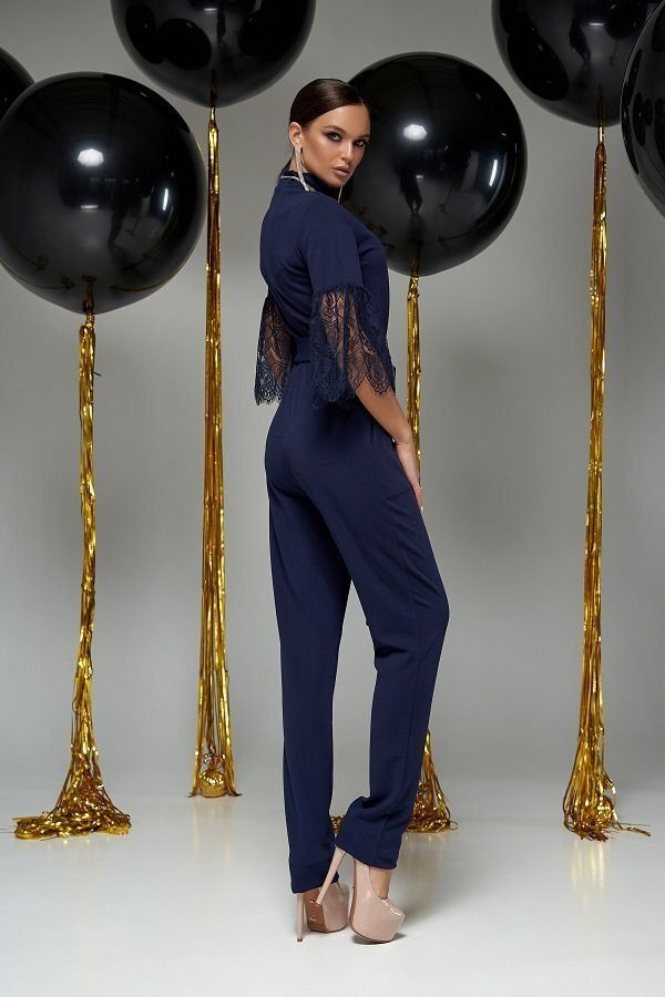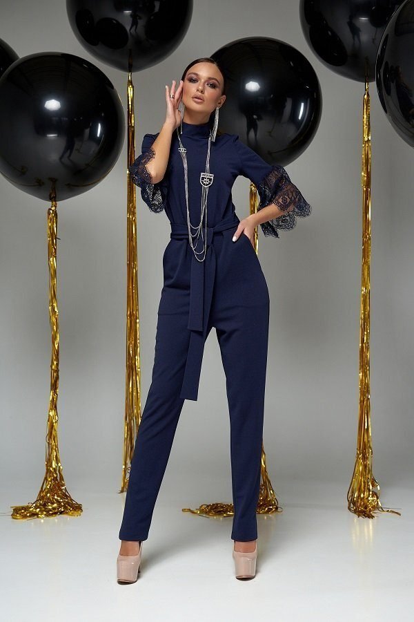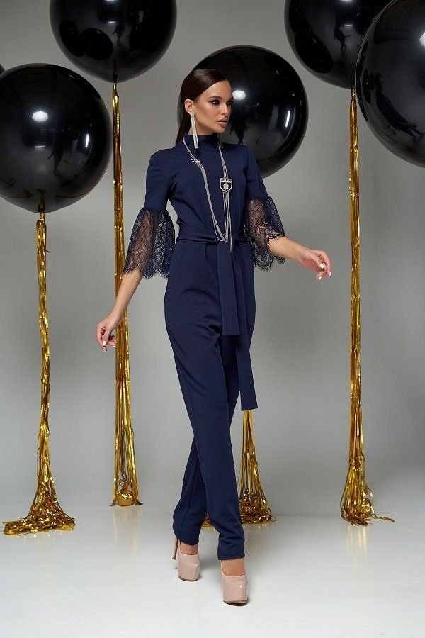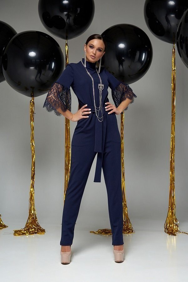 Модная женская одежда не может обойти вниманием такую необычную вещь как комбинезон. Данный вид наряда уже давно стал элементом не только повседневного лука, но и торжественного выхода в свет. Комбинезон всегда считался прерогативой девушек, которые знают толк в моде, ведь такой наряд - это эстетическая вещь, которую, как дорогое шампанское, не всем дано оценить. Однако у него есть несомненное преимущество - не нужно думать что надеть наверх,что вниз, а сосредоточиться только на выборе аксессуаров. Особенностью данной модели является оригинальный фасон и отделка кружевом на рукавах. Изделие прямого кроя с горловиной - стойкой, боковыми карманами и потайной молнией сзади до линии талии. Отрезная талия позволит подчеркнуть и удлинить силуэт.