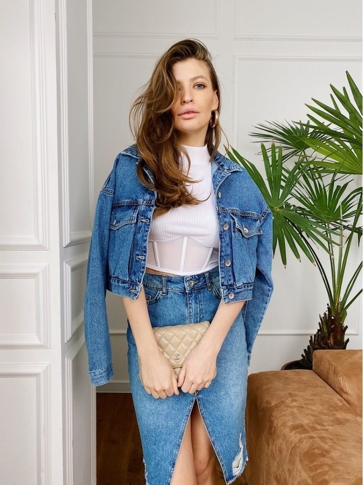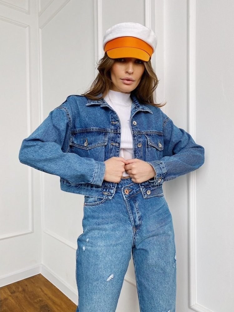 Джинсовая куртка укороченного варианта. Модель с классическим воротником, застежкой на пуговицах спереди, длинными рукавами и двумя нагрудными карманами. Отличный вариант для повседневного образа. Произведено в Турции.