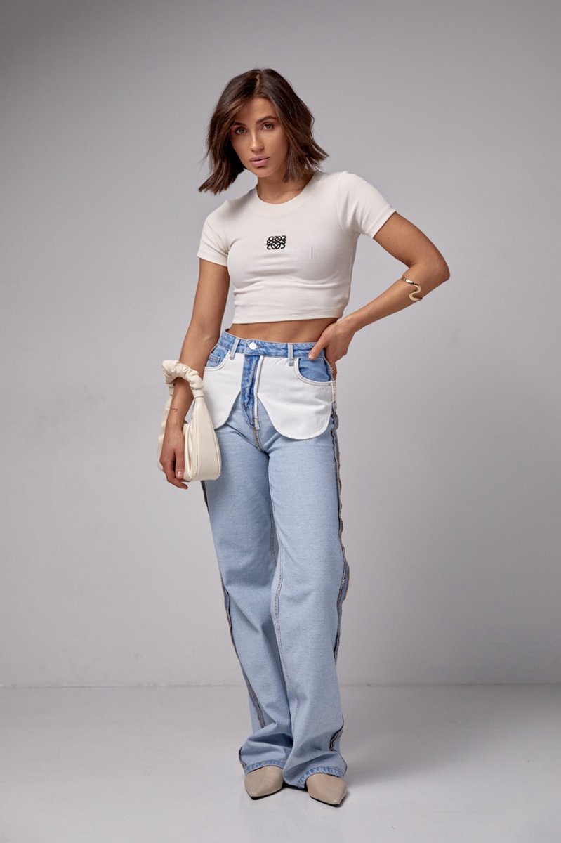 Короткая футболка в рубчик с вышивкой - 231029 бежевая