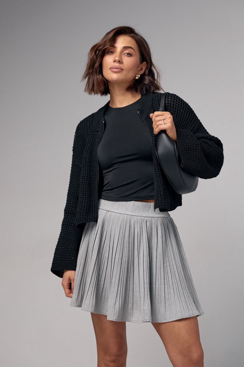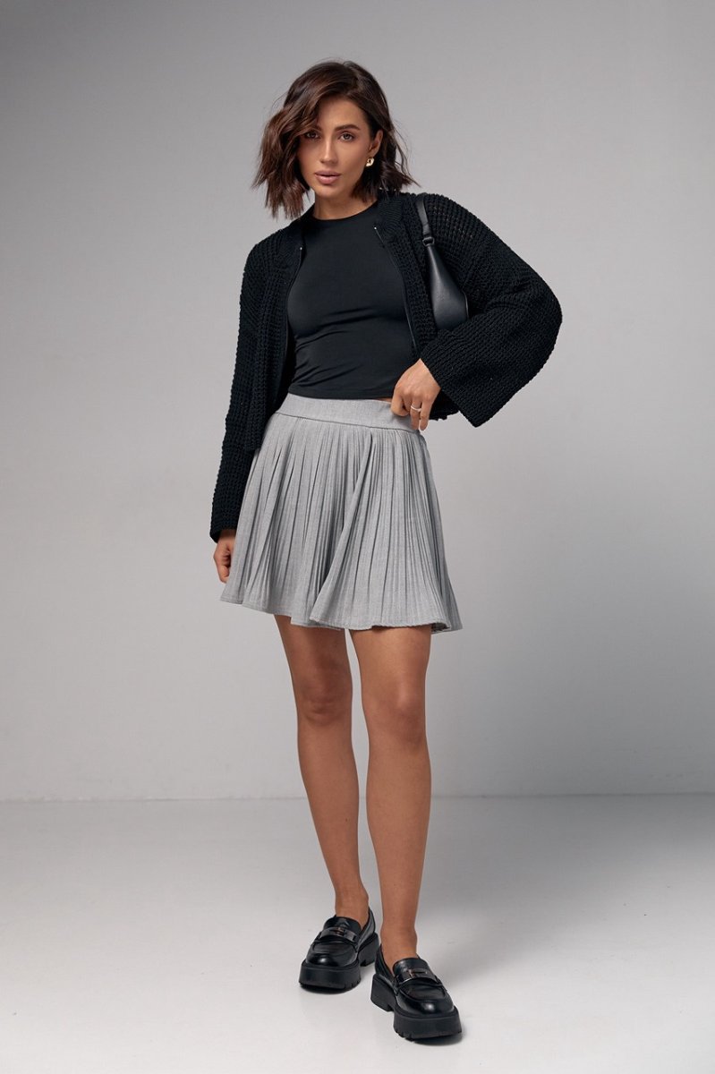 С такой модной короткой плиссированной юбкой ты получишь самые стильные образы в новом сезоне. Она превосходно будет смотреться и с легкими блузами, и с футболками oversize, и с приталенными майками.