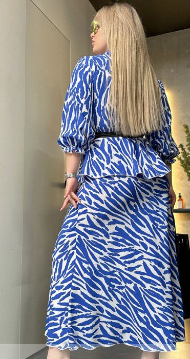 Этот роскошный костюм создан для женщин, стремящихся выглядеть стильно и ярко. Блуза с имитацией запаха и баски внизу создает женственный образ. Рукава длина 3/4 с фигурным манжетом. Подчеркивание талии поясом-кушаком придает акцент на фигуру и создает женский силуэт. Удлиненная карандашная юбка с резинкой на талии завершает комплект.