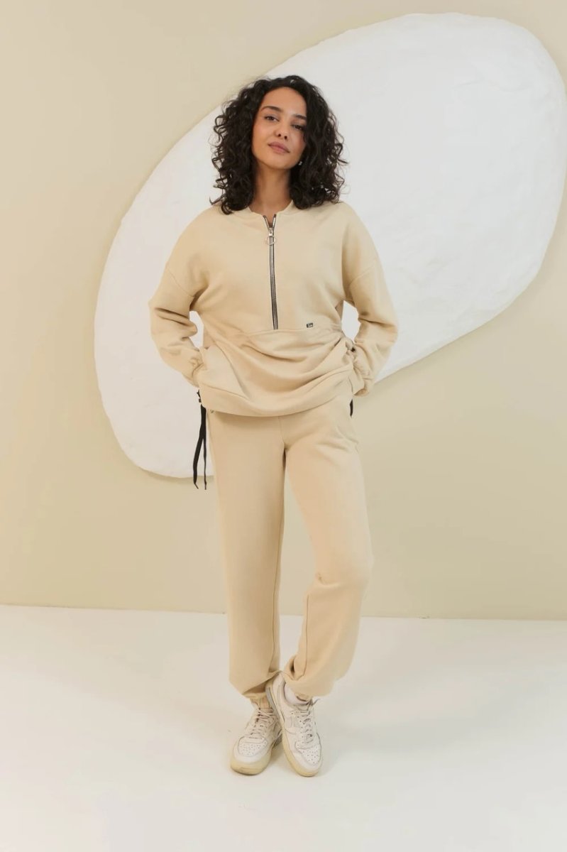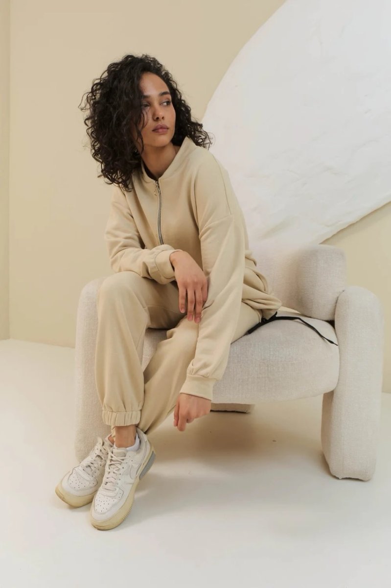 Конструктивные элементы: разрезная полочка, молния, манжеты на резинке, карман