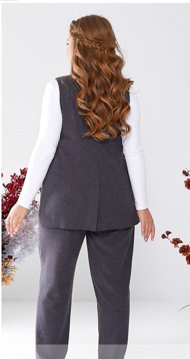 Брючный костюм с удлиненным жилетом, отличающийся лаконичностью и привлекательным дизайном. Такой костюм сейчас используют не только для классических образов, но также создаются яркие женственные образы для прогулок. Жилет с воротником и двумя накладными карманами на уровне талии. На груди есть имитация кармана, а застегивается изделие на две функциональные пуговицы. Для создания изящного силуэта мы сделали две вертикальные вытачки от карманов. Брюки классического кроя с резинкой на талии и боковыми карманами.