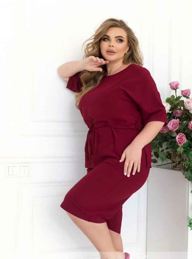 Этот невесомый монохромный костюм способен стать вашим любимым выбором этим летом. Изготовлен из легкой жатой ткани, он придает чувство легкости и комфорта. Лаконические шорты свободного кроя с резинкой с карманами придают практичности и удобству. Они идеально сочетаются с воздушной блузой, имеющей короткие рукава и кулиску, вшитую по линии талии. Этот комплект выгодно подчеркнет ваш стиль и станет отличным вариантом для летних образов.