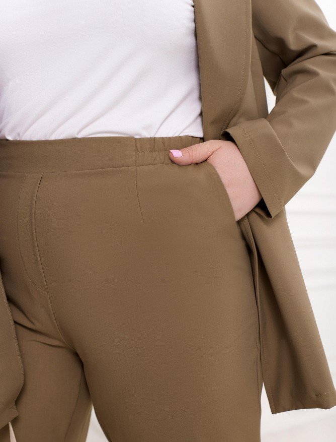 Классический офисный костюм - идеальный вариант для формальных событий и рабочих встреч, а также легко сочетается в образах спортивного шика и комбинируется в повседневных лугах. Пиджак выполнен из высококачественной ткани и имеет изящный крой, подчеркивающий фигуру. Он имеет классический дизайн без карманов и дополнен одной пуговицей по центру, что придает стилю и завершенности образа. Брюки прямого кроя с резинкой на талии очень удобны и комфортны, что делает их идеальными для долгих рабочих дней. Этот классический офисный костюм идеально подойдет для тех, кто ценит комфорт, стиль и строгость одежды.