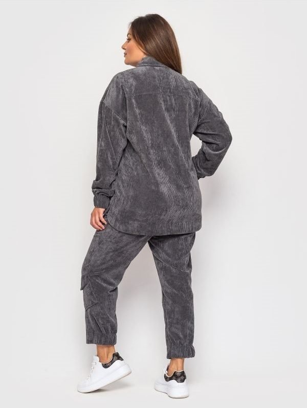 Эффектный бомбер свободного кроя застегивается на молнию, которая скрыта планочкой. Воротник отложной. По переду и по спинке проходит кокетка. Спинка слегка удлинена, по краю полочки - резинка. Полочка дополнена вместительными накладными карманами с клапанами. Манжеты рукавов на резинке, спущенная пройма.