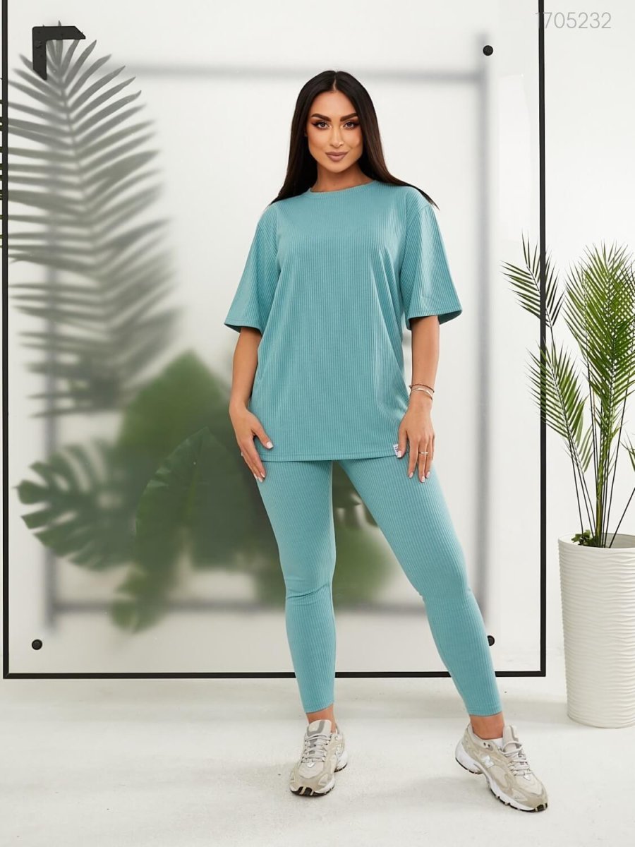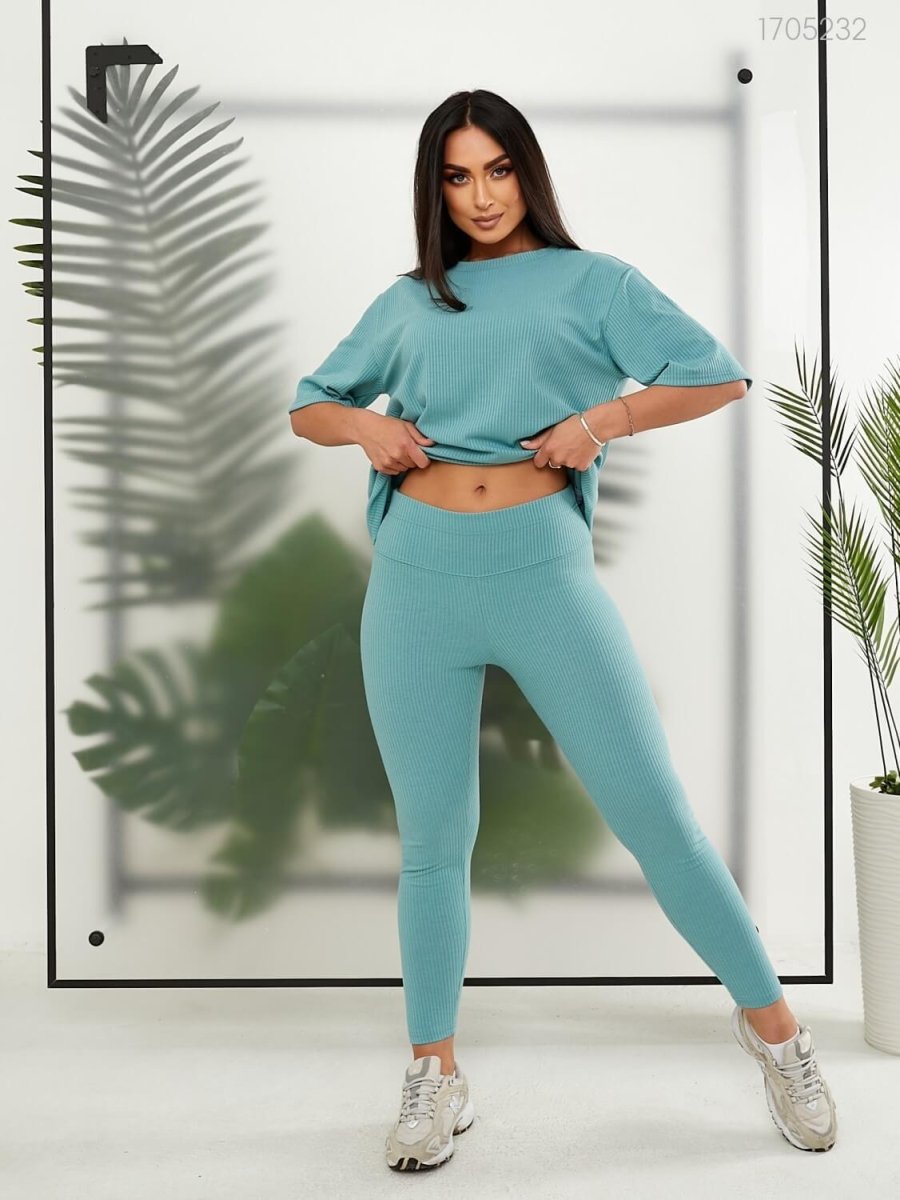 Подробности: удлиненная футболка в стиле oversized и леггинсы высокой посадки.