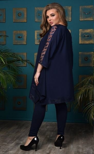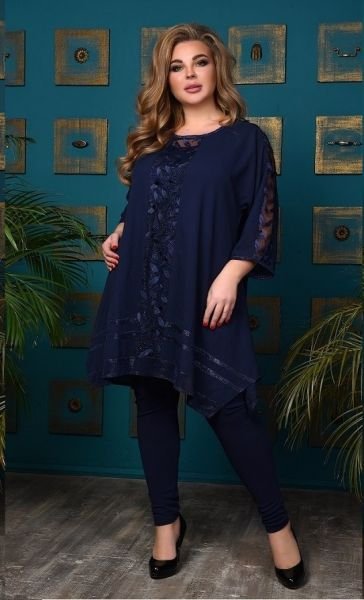 Туника из стрейчевого креп-шифона со вставками из 3D сетки "листики" и отделкой из трикотажа "лунный свет"