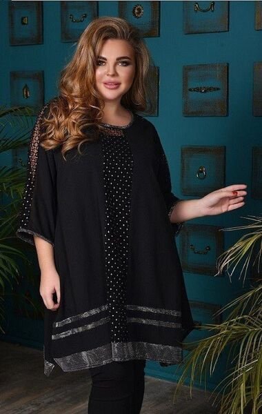 Туника из стрейчевого креп-шифона вставками из структурной сетки и отделкой из трикотажа "лунный свет"