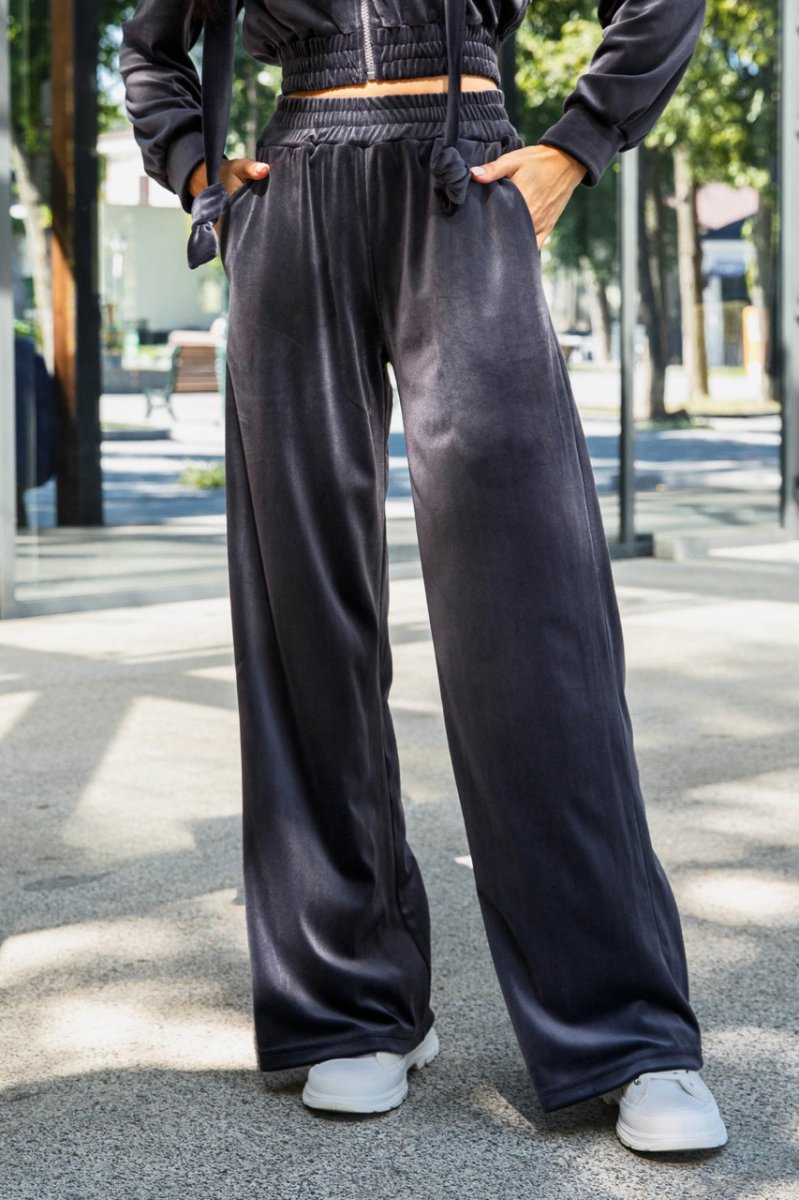 Модный женский костюм с велюром в стиле спорт-шик. Наш новый прогулочный костюм – двойка – отличный выбор на теплую осень! Главным критерием для повседневной одежды остается комфорт. В новой модели Вы будете чувствовать себя удобно и комфортно, ведь это так важно в современном ритме жизни. Модель костюма сочетает в себе свитшот с длинными рукавами с капюшоном и штаны – кюлоты свободного кроя.