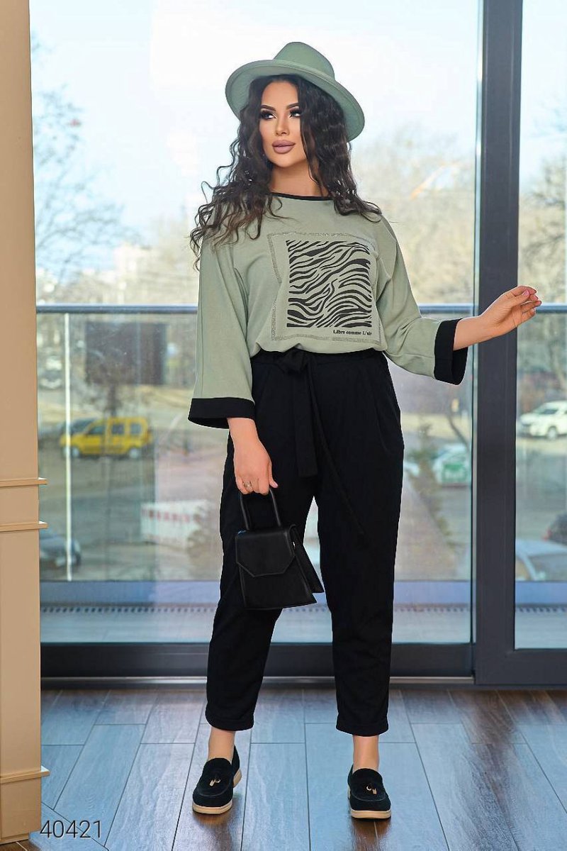 Костюм женский. Кофта и штаны. Кофта с принтом «зебра»+декор из камней, штаны на резинке. Ткань: кофта-трикотаж лакоста с добавлением хлопка,производство Турция (хорошая растяжимость,мягкая и приятная), штаны - креп дайвинг.