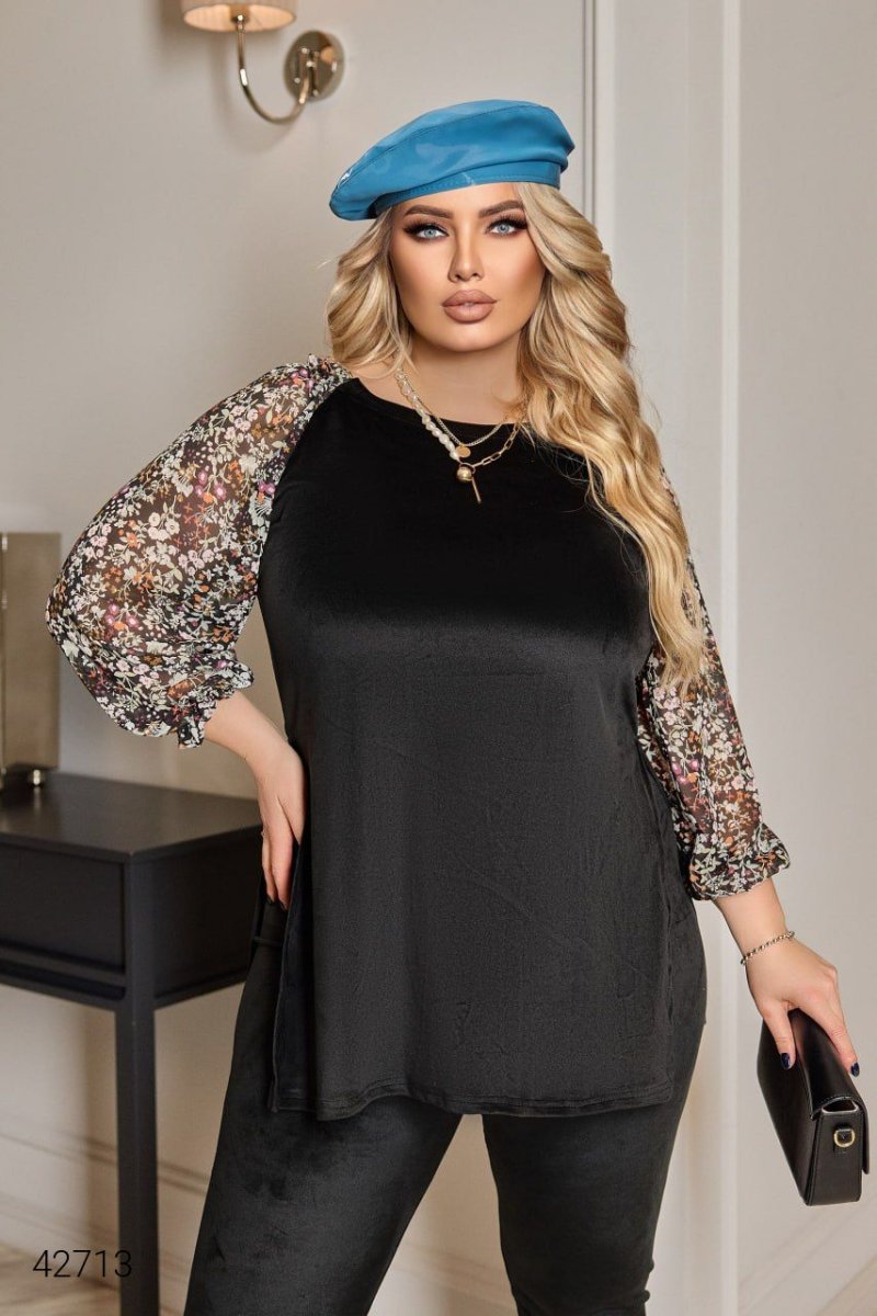 Ткань: велюр-спорт (на хлопковой основе), рукава – шифон.