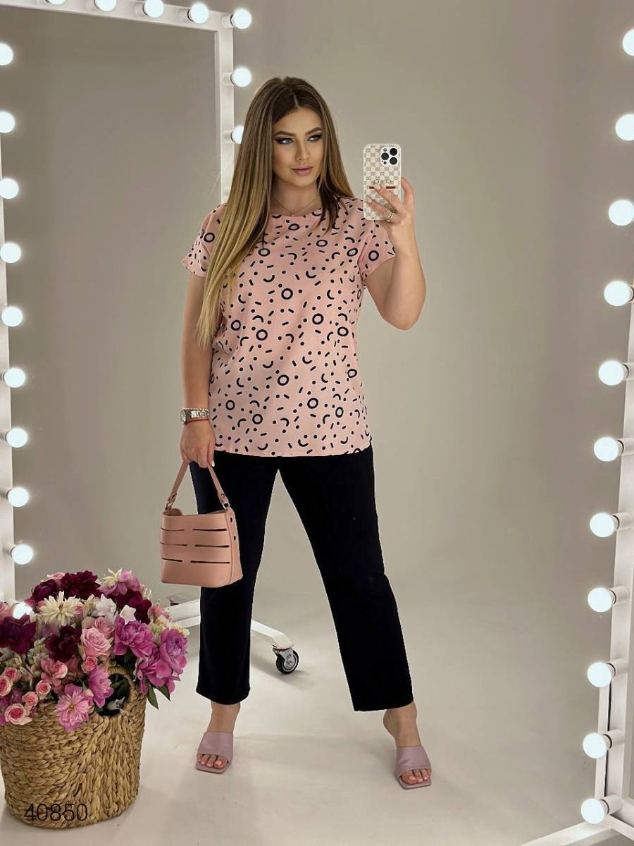 Костюм женский больших размеров. Брюки на резинке. Ткань: ретро стрейч