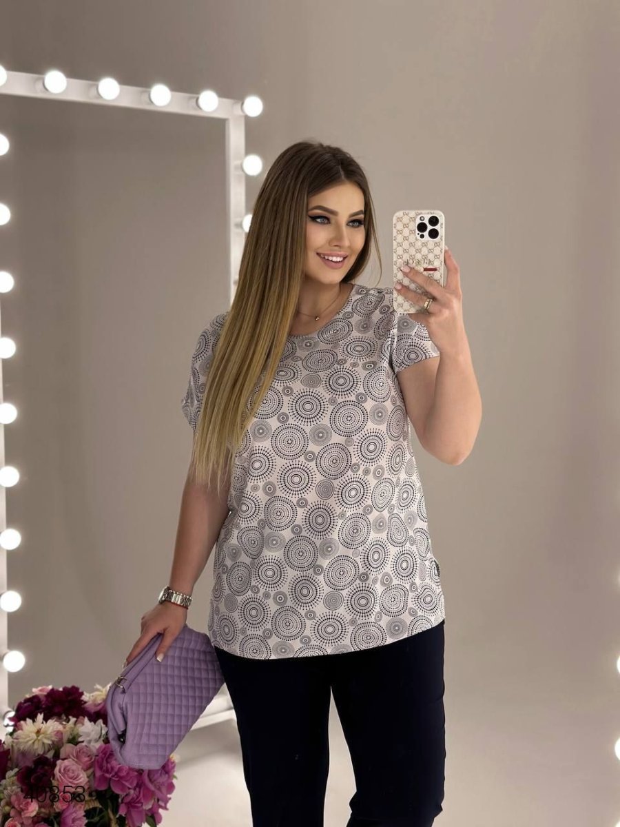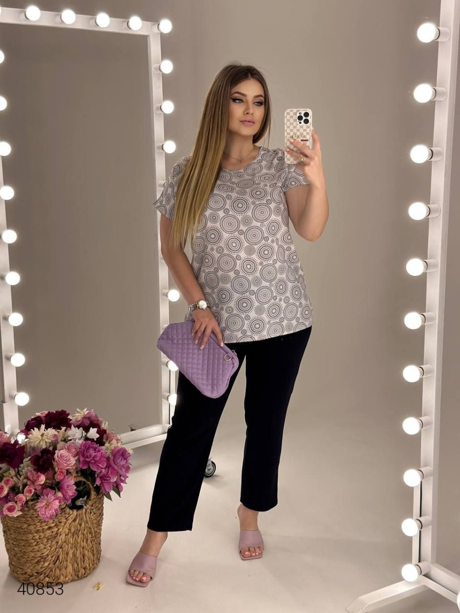 Костюм женский больших размеров. Брюки на резинке. Ткань: ретро стрейч