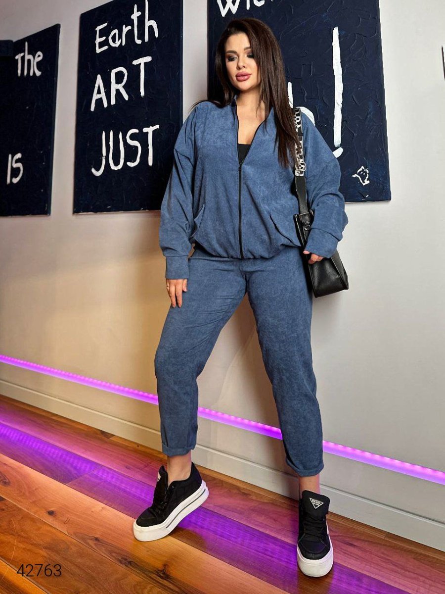 Костюм женский плюс сайз джогеры и бомбер 42763 синий