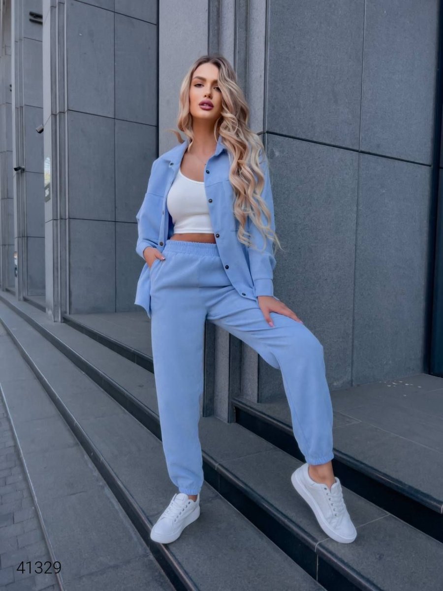 Костюм женский вельветовый. Прямая рубашка и штаны. Ткань: микровельвет, тянется.