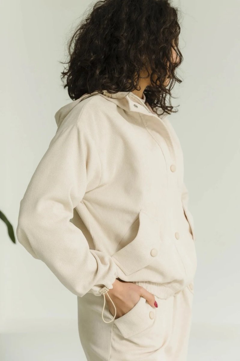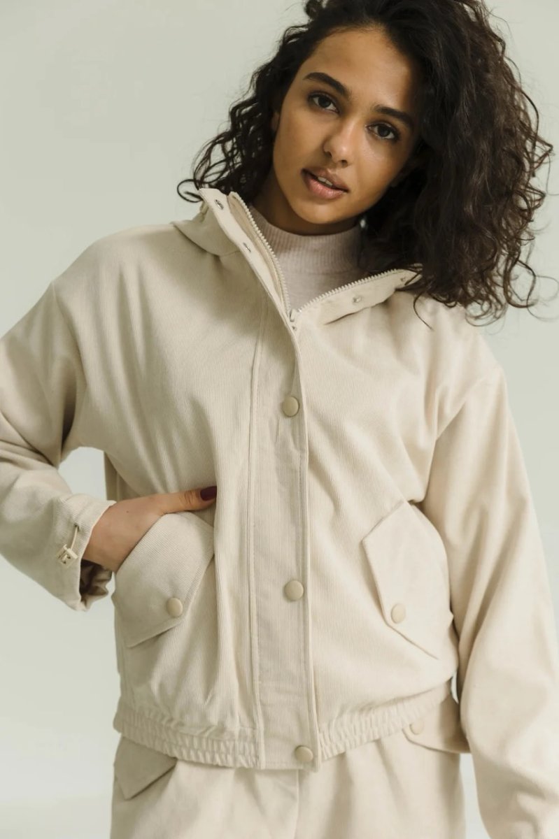 Конструктивные элементы: пояс на резинке, рукава на затяжках, капюшон