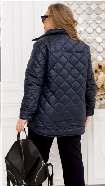 Куртка застегивается на целый ряд клавиш, размещенных на планочке. На груди декоративные карманы, а по бокам внизу – функциональные карманы врезного типа. Разделение симметрично закруглено, что придает изделию мягкость в линиях.