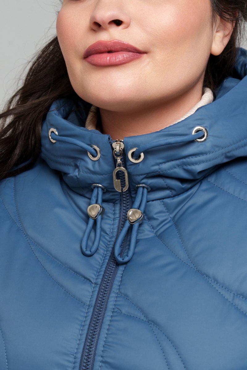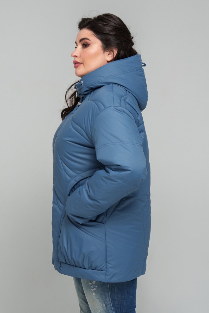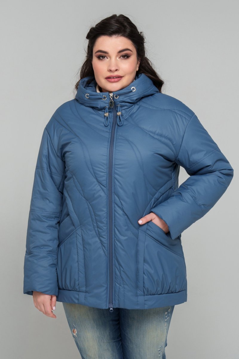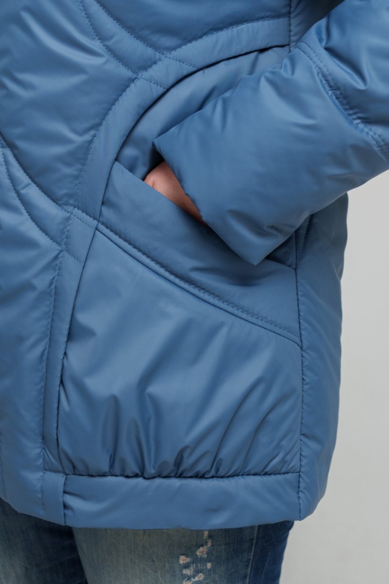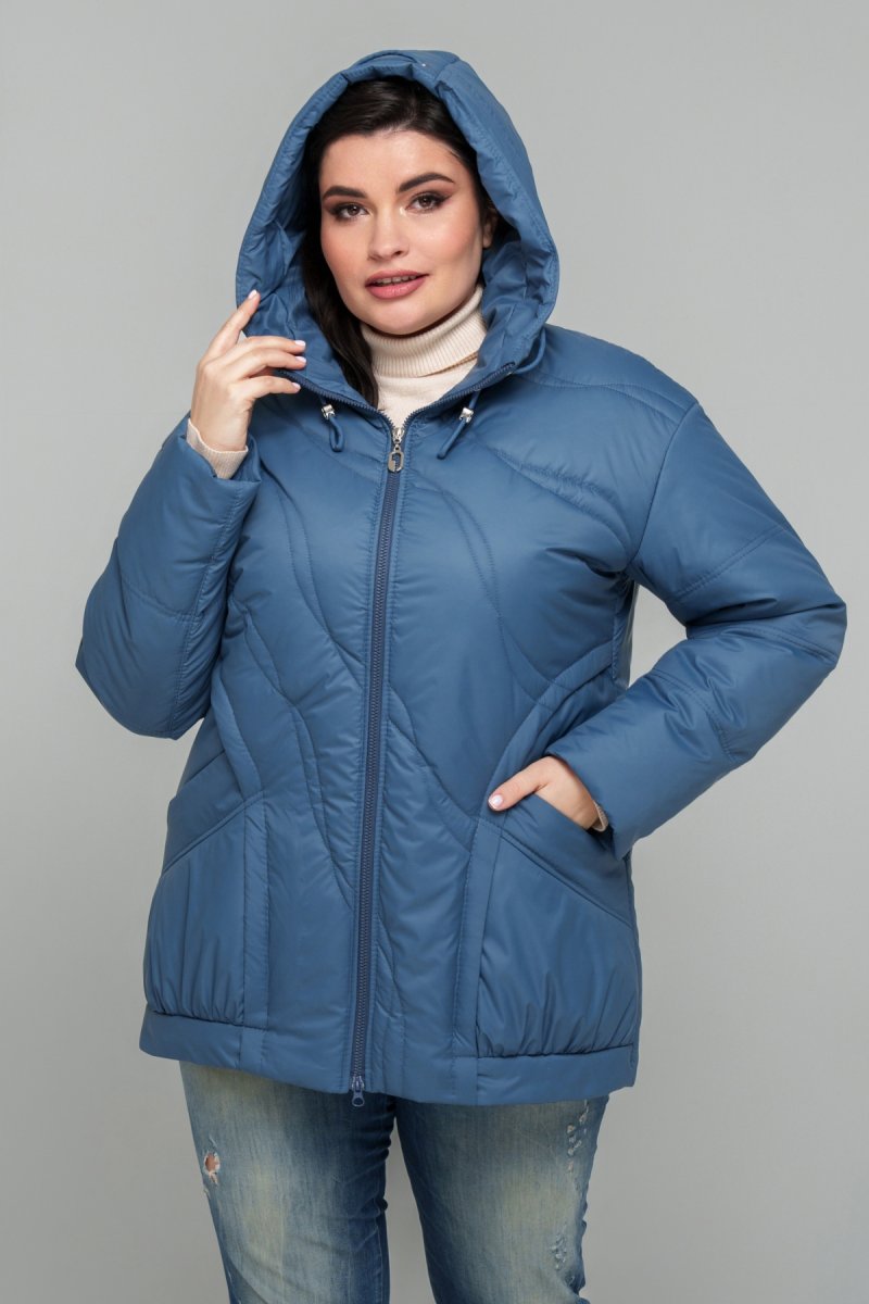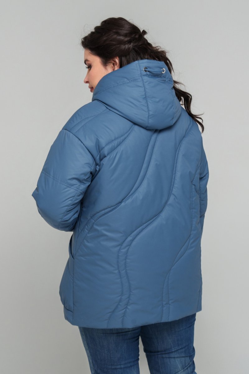 Куртка прямого силуэта, изготовленная из плащевки, наполнитель тинсулейт 100 (г/м2). По спинке и полке модель украшена фигурной выстрочкой. Спущенное плечо, рукав втачный, двухшовный. Капюшон втачный (несъемный), украшен функциональным шнурком с зажимами. Карманы накладные с уборкой внизу. Застежка на двустороннюю молнию. Подкладка: нейлон.