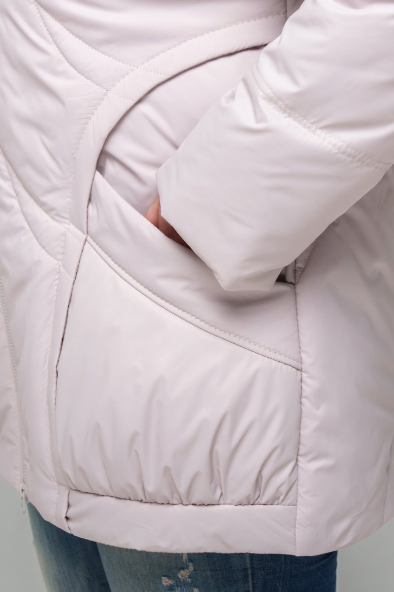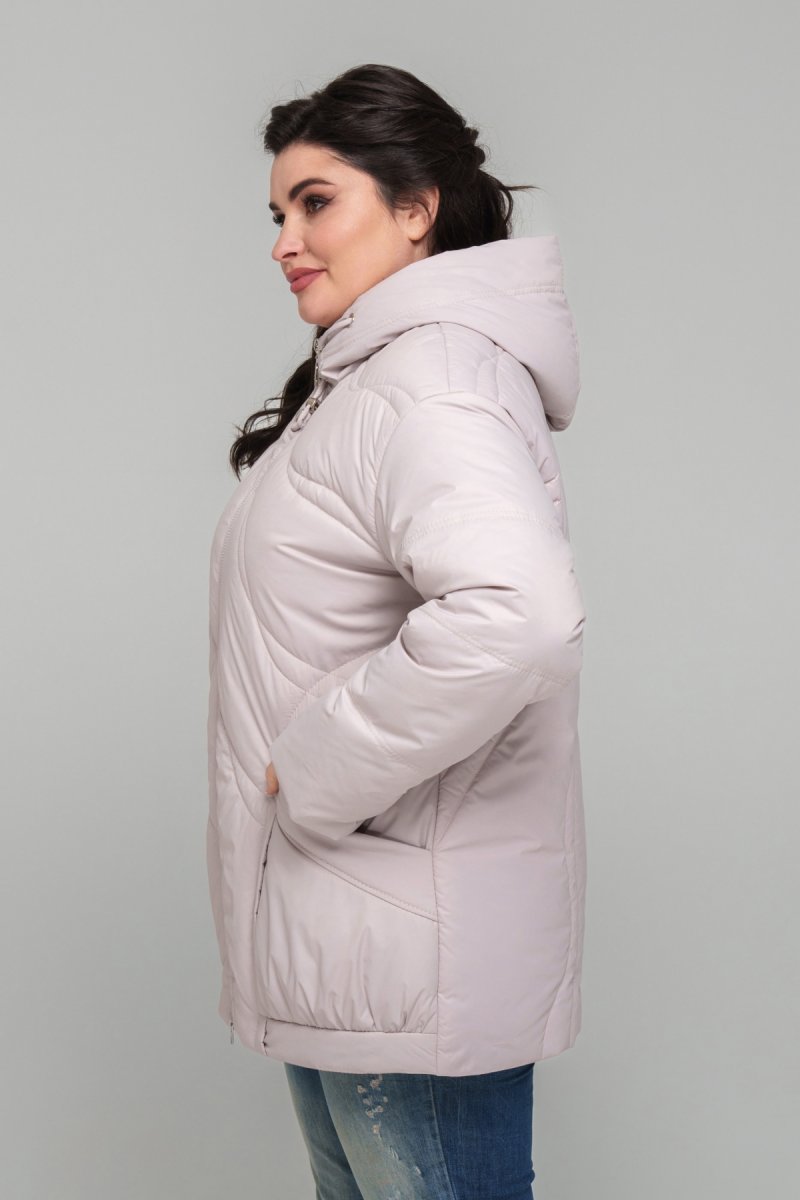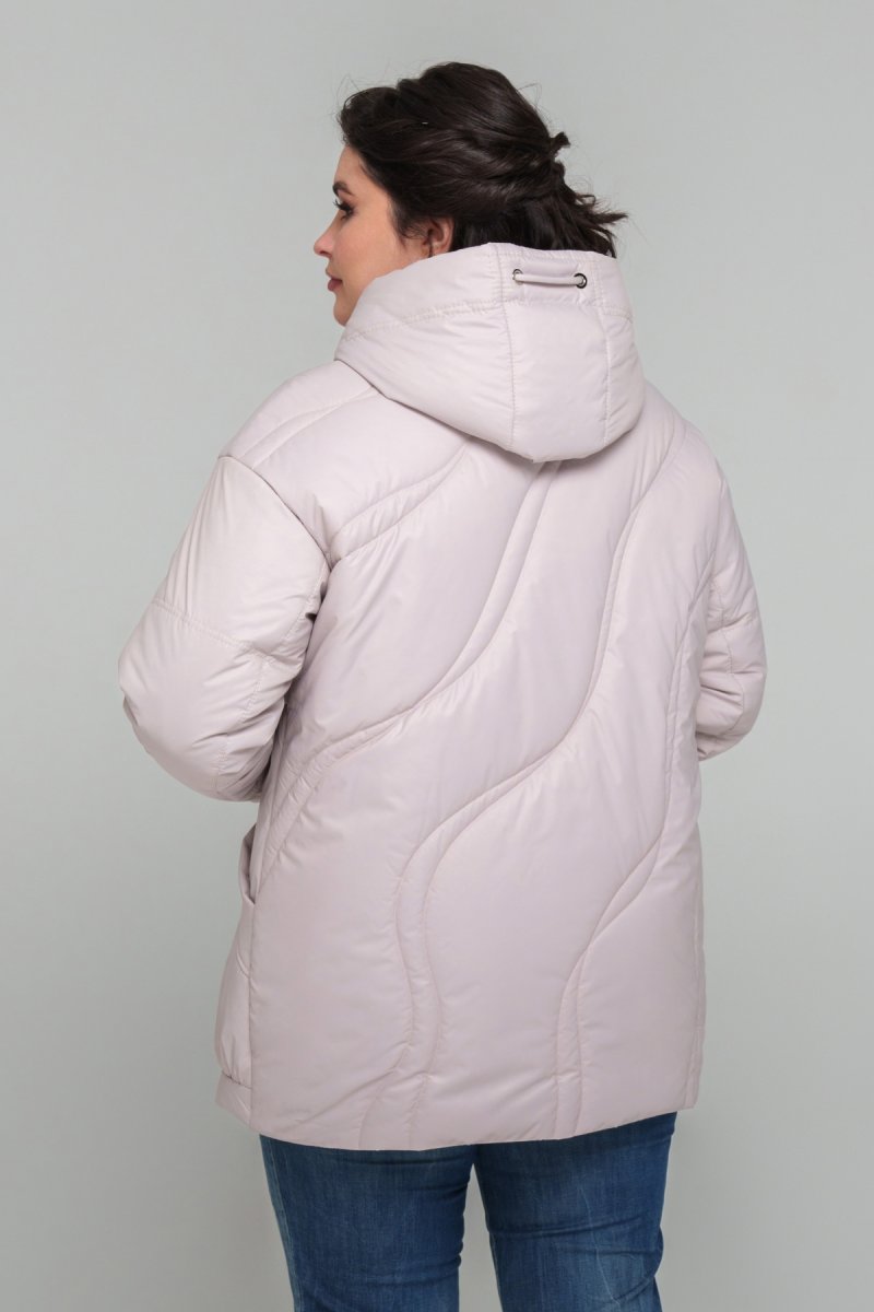 Куртка прямого силуэта, изготовленная из плащевки, наполнитель тинсулейт 100 (г/м2). По спинке и полке модель украшена фигурной выстрочкой. Спущенное плечо, рукав втачный, двухшовный. Капюшон втачный (несъемный), украшен функциональным шнурком с зажимами. Карманы накладные с уборкой внизу. Застежка на двустороннюю молнию. Подкладка: нейлон.