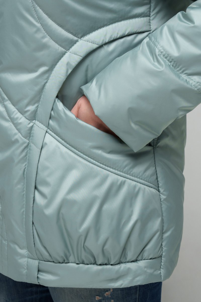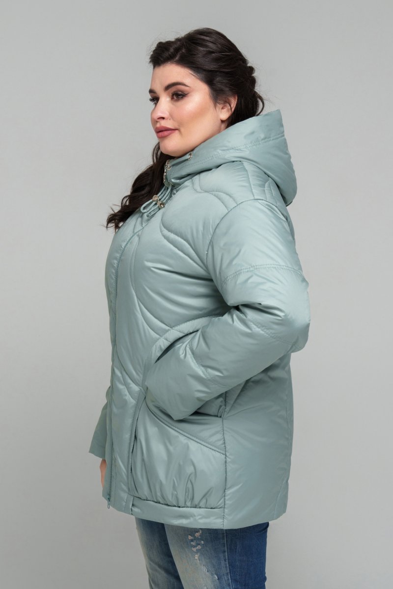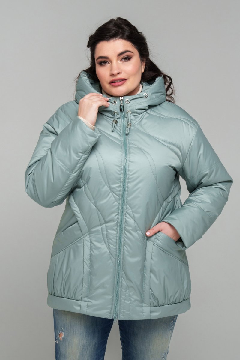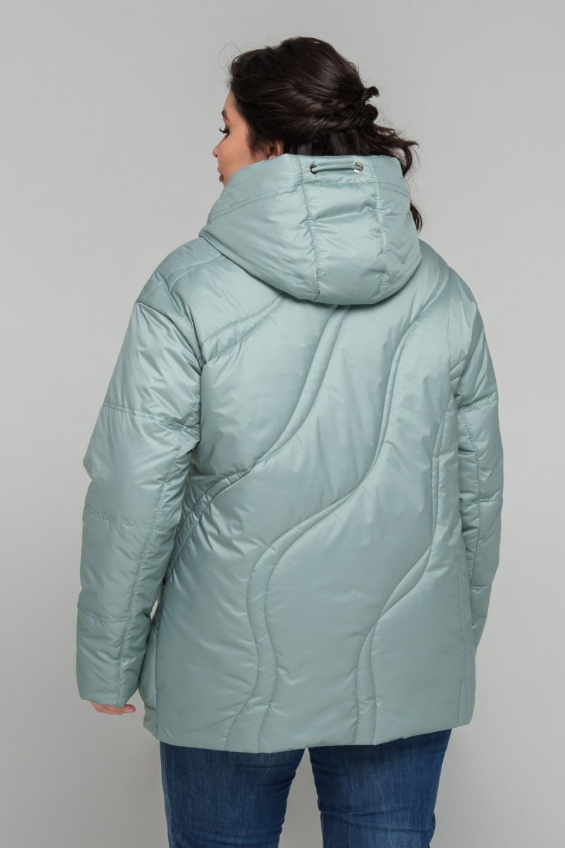 Куртка прямого силуэта, изготовленная из плащевки, наполнитель тинсулейт 100 (г/м2). По спинке и полке модель украшена фигурной выстрочкой. Спущенное плечо, рукав втачный, двухшовный. Капюшон втачный (несъемный), украшен функциональным шнурком с зажимами. Карманы накладные с уборкой внизу. Застежка на двустороннюю молнию. Подкладка: нейлон.