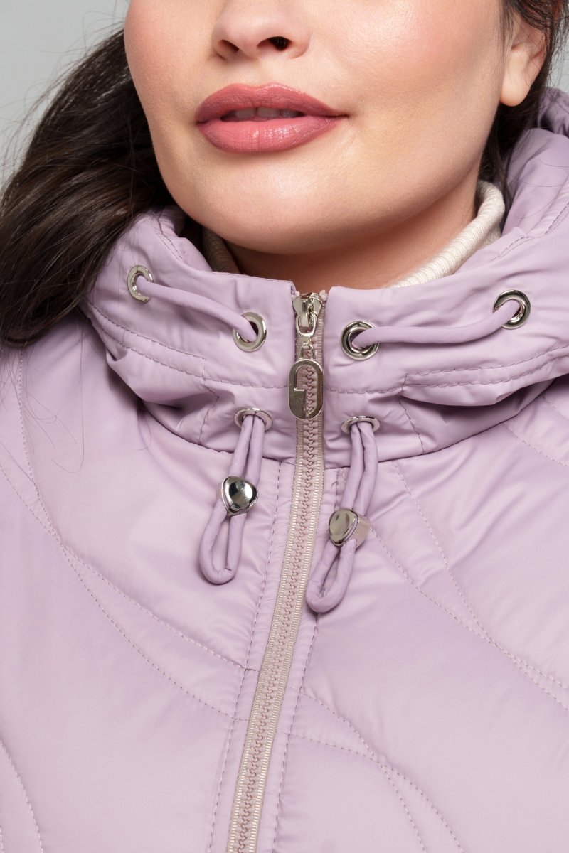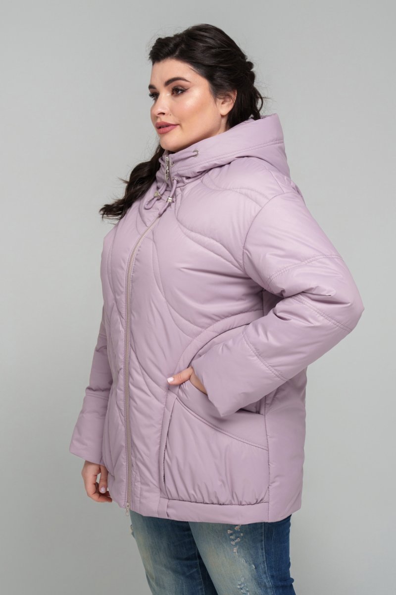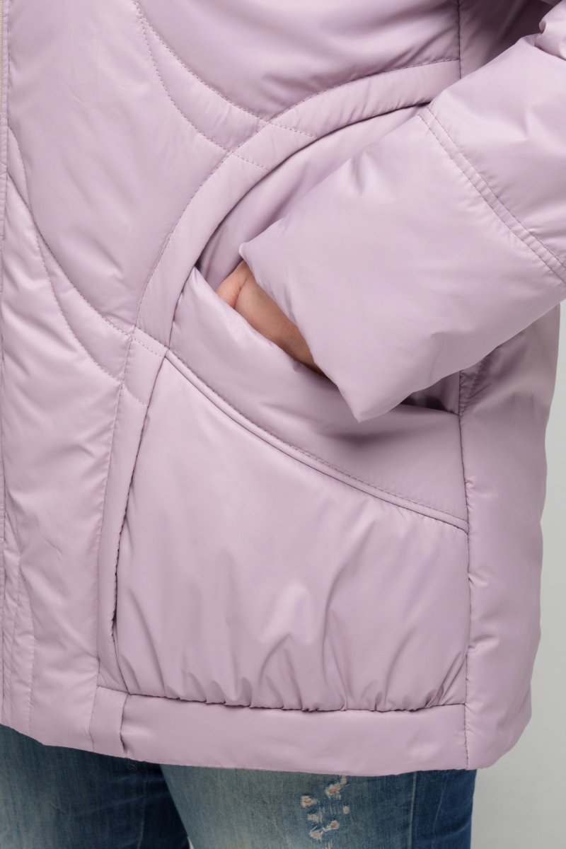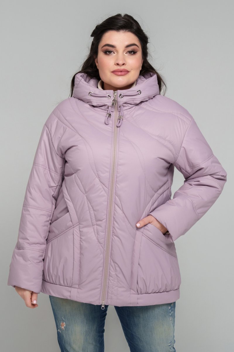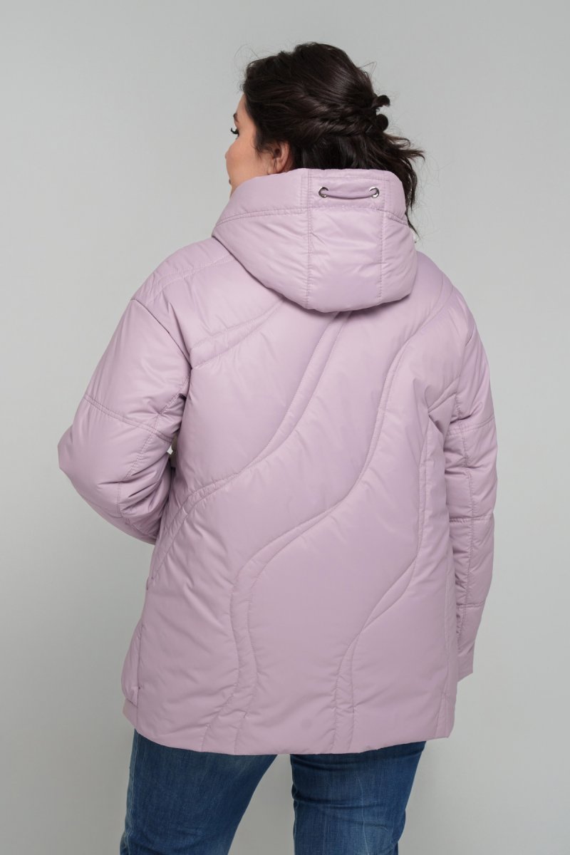 Куртка прямого силуэта, изготовленная из плащевки, наполнитель тинсулейт 100 (г/м2). По спинке и полке модель украшена фигурной выстрочкой. Спущенное плечо, рукав втачный, двухшовный. Капюшон втачный (несъемный), украшен функциональным шнурком с зажимами. Карманы накладные с уборкой внизу. Застежка на двустороннюю молнию. Подкладка: нейлон.