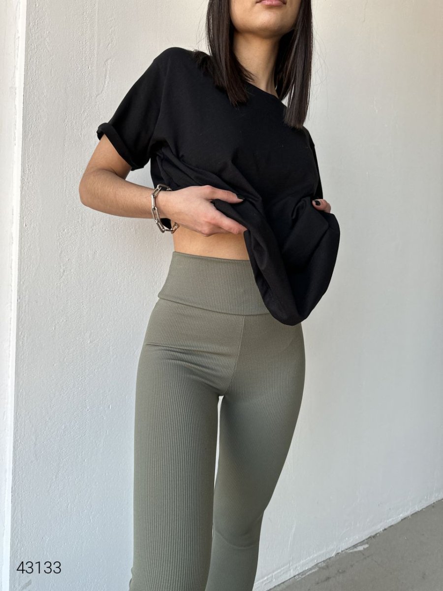 Леггинсы с высокой посадкой в рубчик. Производство – Турция.