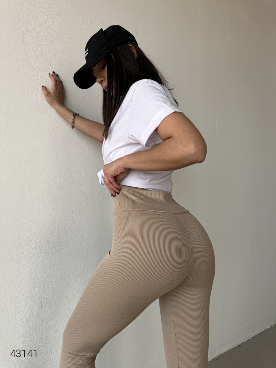 Леггинсы с высокой посадкой в рубчик. Производство – Турция.