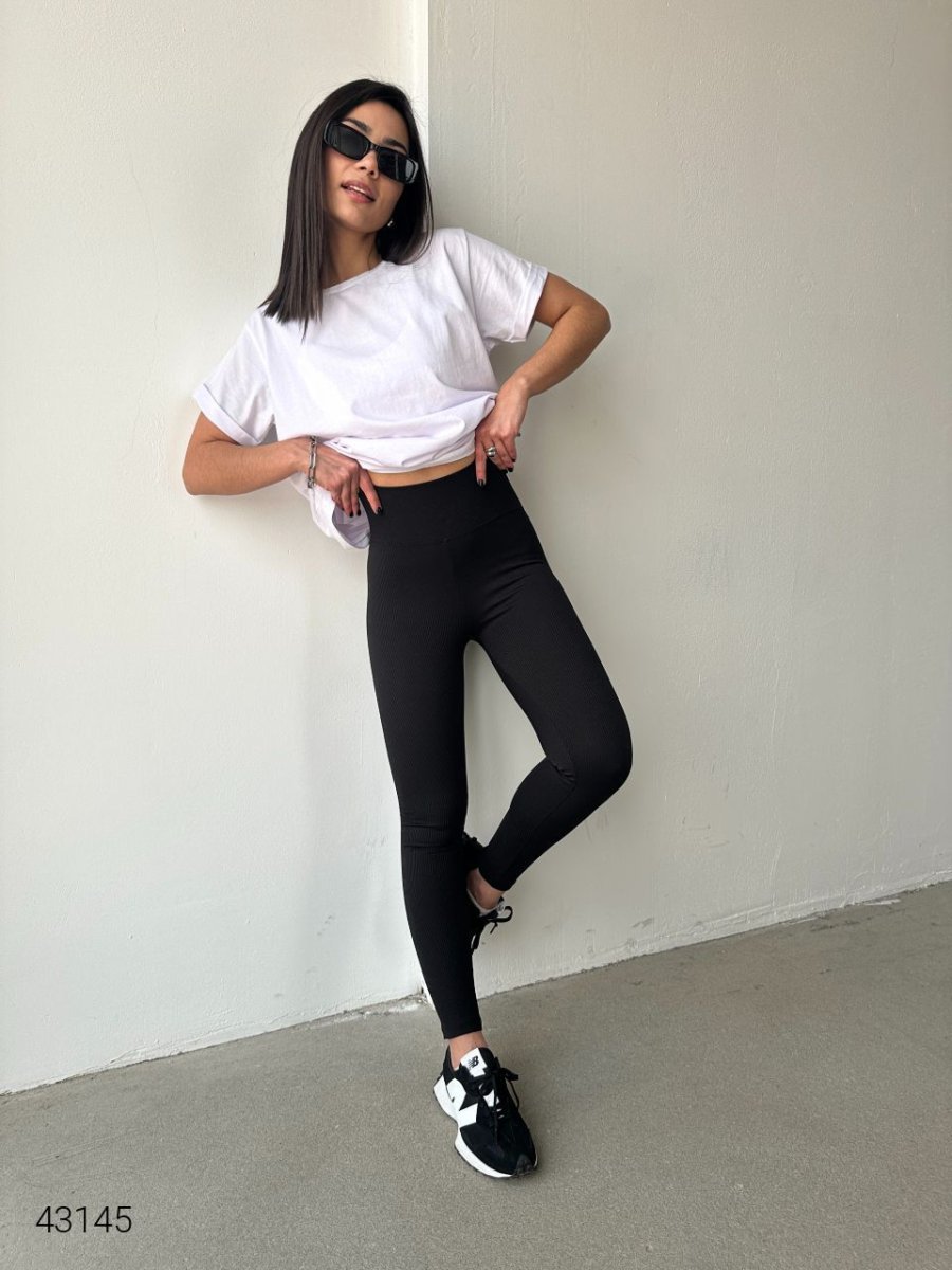 Леггинсы с высокой посадкой в рубчик. Производство – Турция.