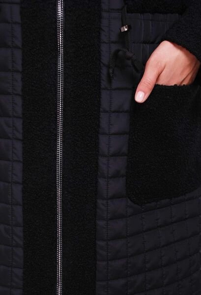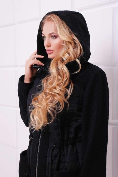 Пальто в стиле кежуал, выполненное из комбинации двух тканей – буклеванной шерстяной и стеганной плащевки на синтепоне отлично подойдет для ранней осени.