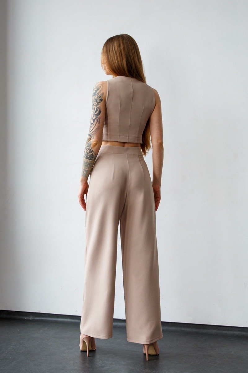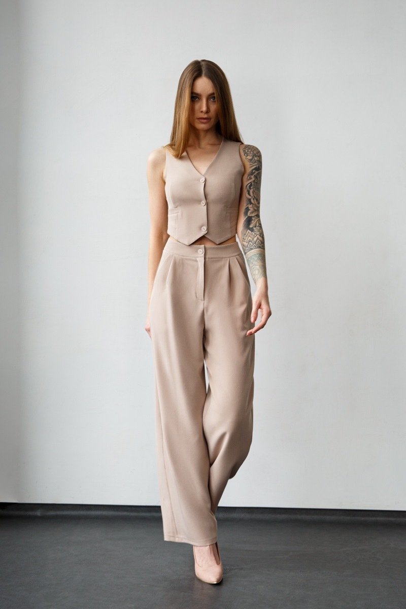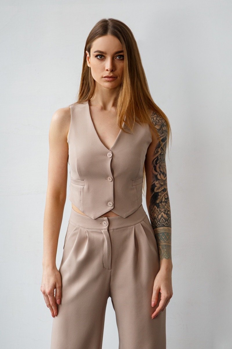 Стильный фасон и отличная посадка костюма позволят выглядеть безупречно. Костюм подойдет девушке с любым типом фигуры, можно носить как под высокие каблуки, так и под низкий ход. Жилет без подкладки.