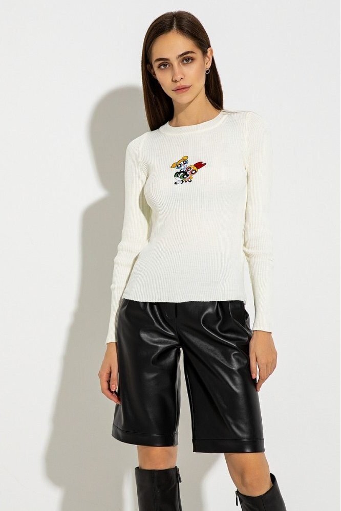 Лонгслив с вышитым принтом Суперкрошки (Powerpuff Girls). Лонгслив женский – это незаменимое изделие для поклонниц стиля кэжуал, которое остается на волне популярности долгое время и не собирается сдавать позиции.